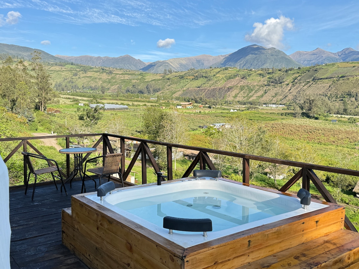 Lovely suite with panoramic view of the mountains, spacious and comfortable rooms and social areas, outdoor pool and jacuzzi, WIFI, fully equipped kitchen, gift basket, terrace and sunshade. Located in San Jose de Chaltura, 15 minutes from Ibarra, 1:30 hours from the International Airport, Quito. This Farm Home was designed to help you connect with nature, rest and renew, surrounded by a unique landscape, exclusive for you. The property has 6 hectares of gardens, fruit trees and avocado trees.