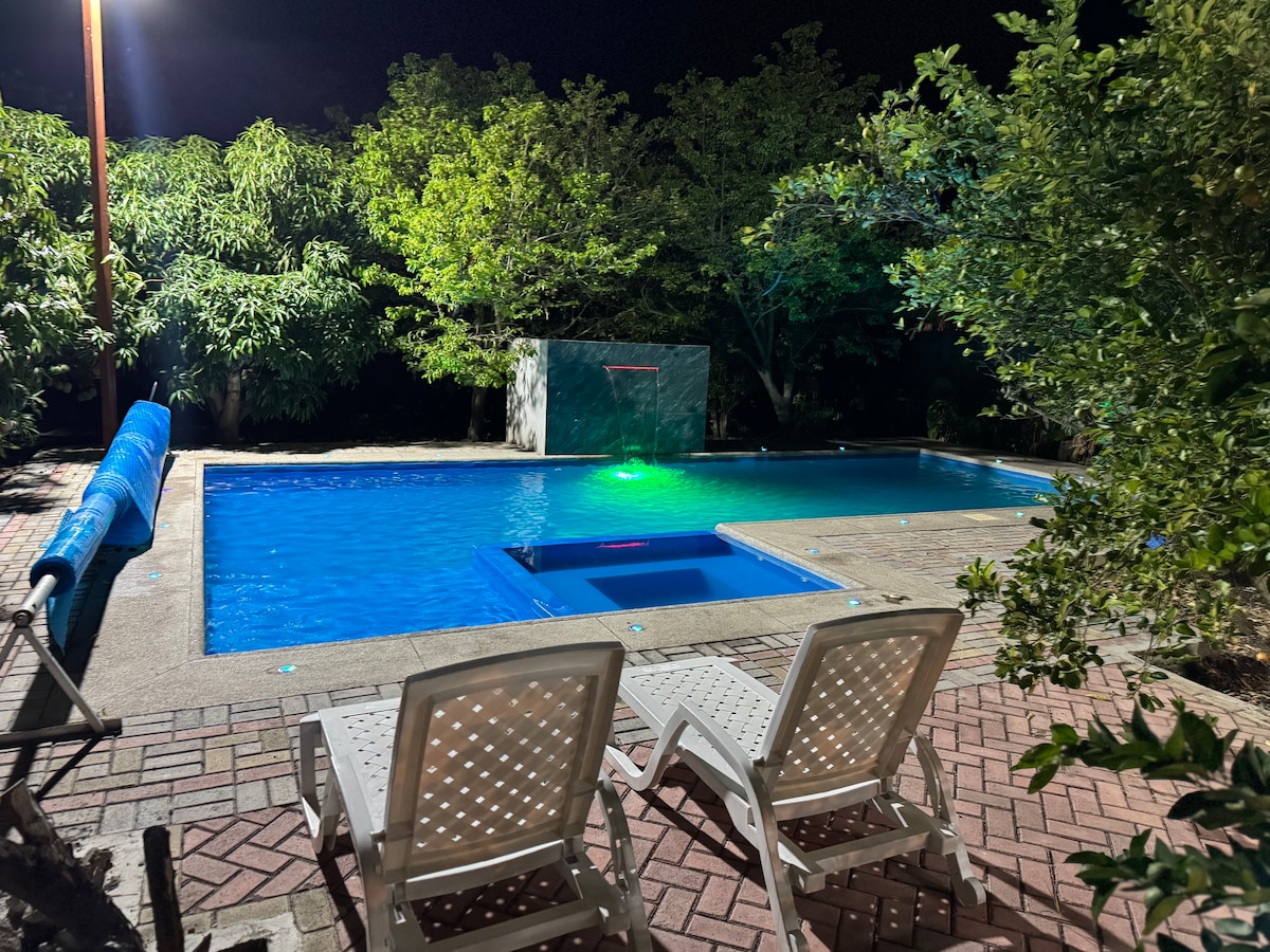 Villa del Sol is a vacation estate and farm located in a picturesque landscape. Enjoy a serene and luxurious stay surrounded by the beauty of nature. Our estate offers an unforgettable outdoor experience. Pleasant warm and dry climate Large pool, jacuzzi, soccer, volleyball, and basketball courts, and ample space for your family or friends Verty comfortable BBQ area with grill, bar, tables, and chairs Fully equipped kitchen Very private and secure Pet-friendly Wi-Fi