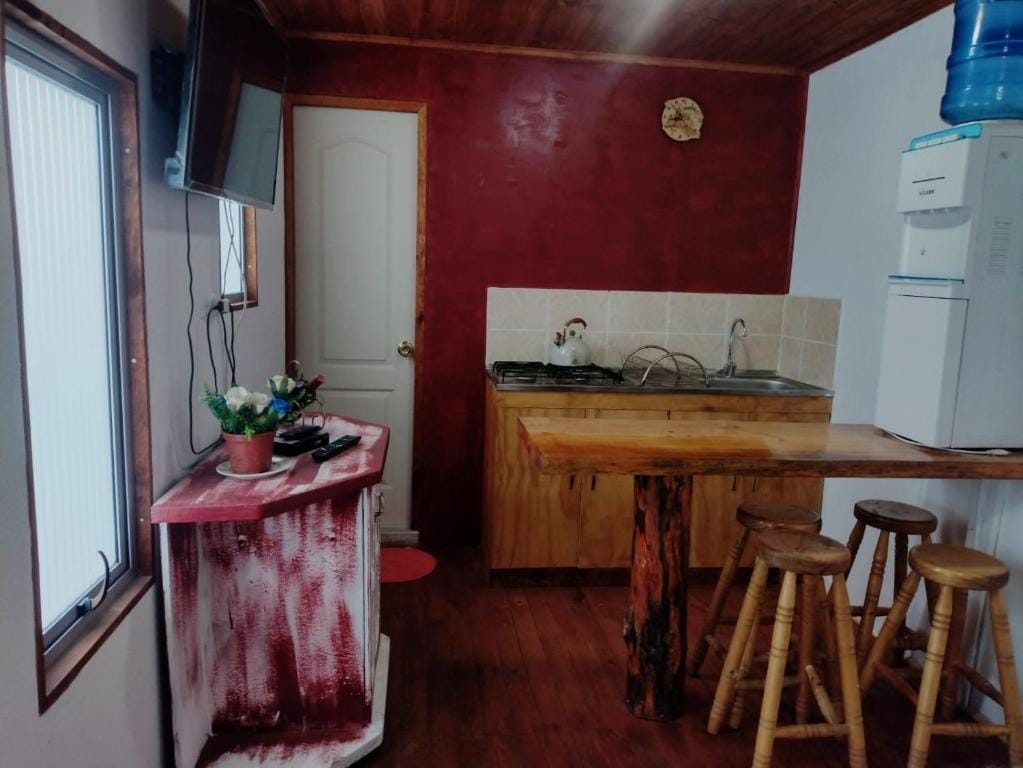 Disfruta de la sencillez de este alojamiento tranquilo y céntrico. Cuenta con una hermosa vista hacia la Laguna de Cahuil. Cabaña en segundo piso. Cercana a todo el comercio y restaurantes. Equipada para dos personas comodamente. Equipado con: Horno Microondas Hervidor Frigobar TV con Cable Se encuentra a: 10min de Punta de Lobo. 15min de Pichilemu. 5min Laguna Cahuil. 10min de Salinas de Cahuil.