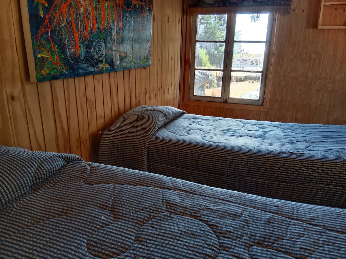 Cabaña con cocina equipada completamente. El Living cuenta con estufa a combustión lenta. 2 Dormitorios con sus respectivas ropas de cama. 1 Habitación con cama matrimonial y otra Habitación con 2 camas. Cuenta con toallas de cuerpo y manos. Baño con jabón. Con estacionamiento para un vehículo. La cabaña está ubicada a 20 min del mar caminando aproximadamente, en zona de seguridad ante tsunamis. Sector tranquilo y comercio cerca. Pequeña terraza con mesa, sillas, parrilla y vista al Mar.