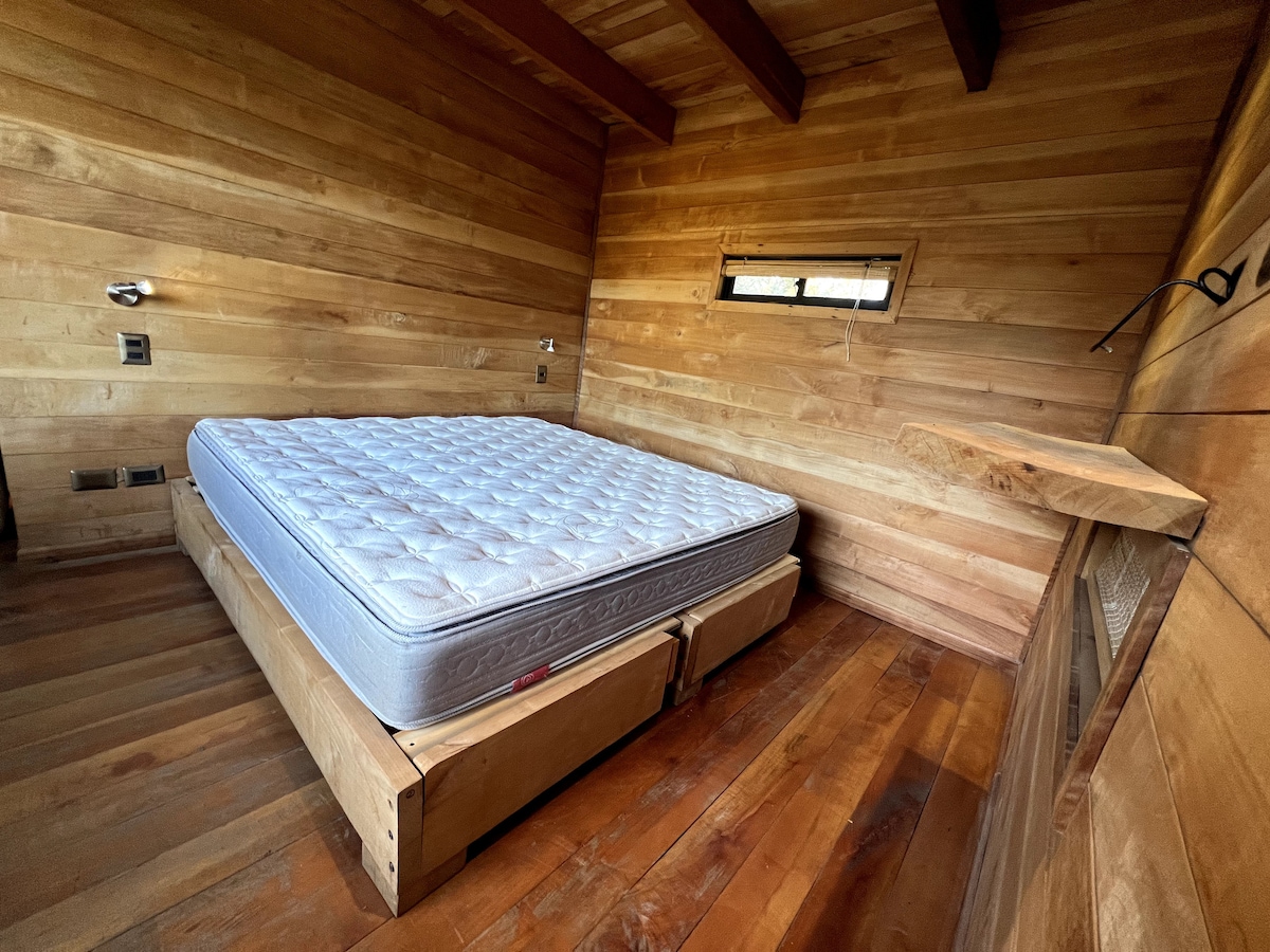 Espacio acogedor de estilo rústico, ideal para quienes viajan solos y buscan descansar en contacto con la naturaleza. Construida en madera, ofrece un ambiente cálido y luminoso gracias a su ventana con vista al bosque. Comparte un baño moderno y funcional con solo dos habitaciones más, lo que garantiza comodidad y un ambiente tranquilo. Una opción perfecta para desconectarse y disfrutar de una estadía simple, natural y confortable.