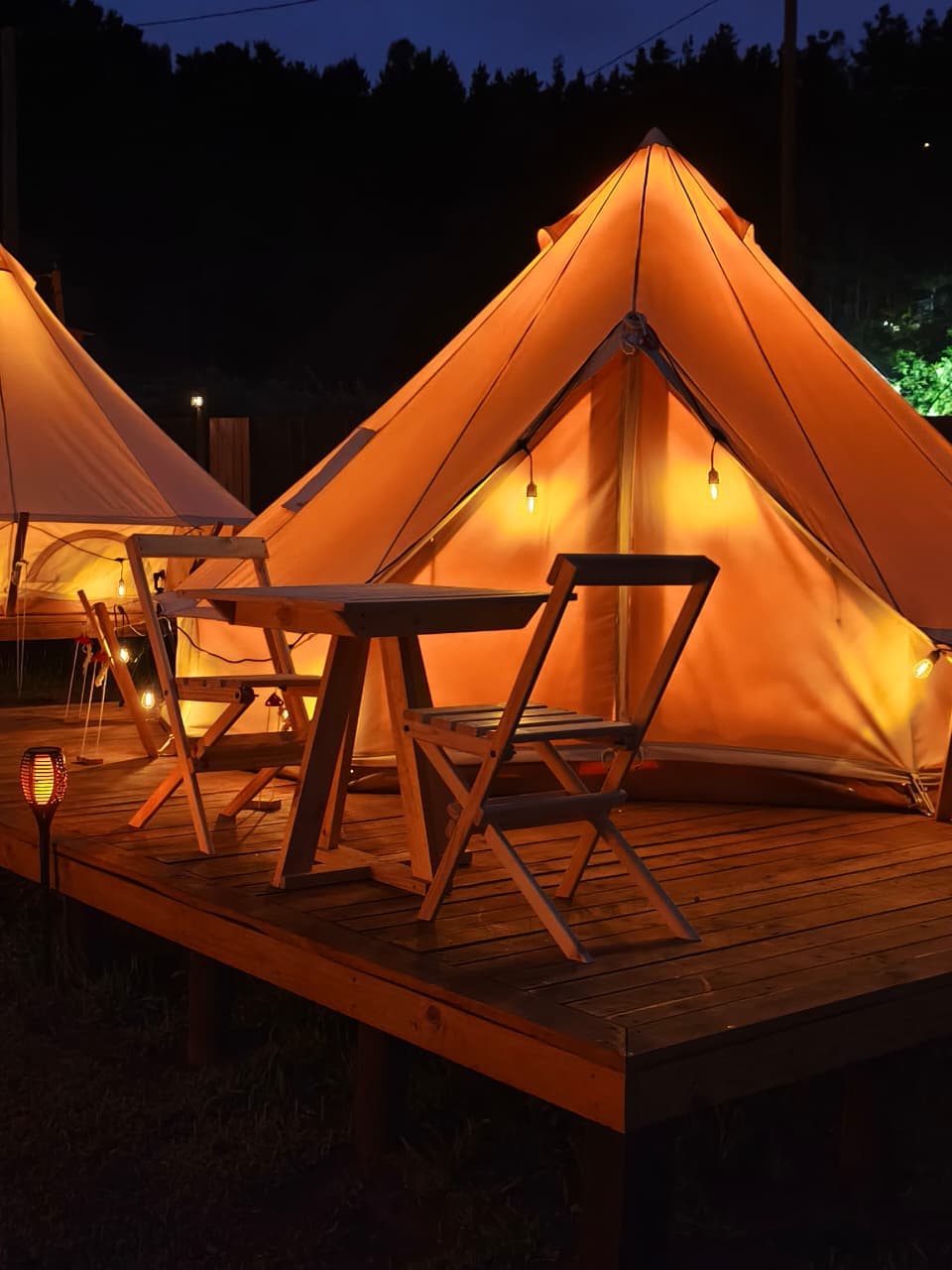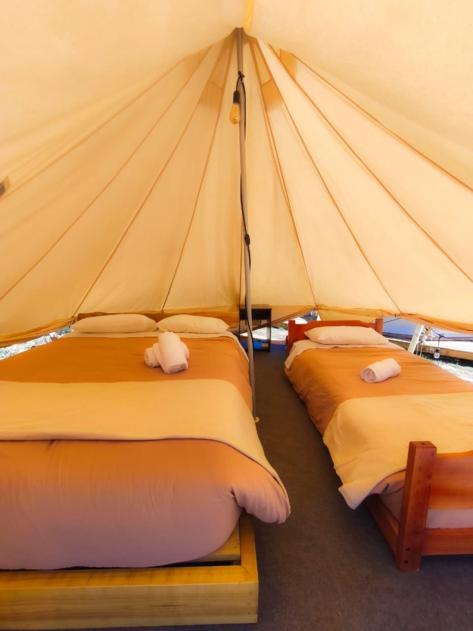 Vive la experiencia de acampar con el confort de un glamping en Punta de Lobos, dentro de un camping full equipado para disfrutar de espacios comunes, excelentes baños y con alternativas de distintas experiencias para disfrutar. Nuestra carpa es amplia, acogedora y rodeada de naturaleza. Perfecta para parejas, familias o amigos que buscan desconectar y explorar Pichilemu. Capacidad hasta 4 personas.