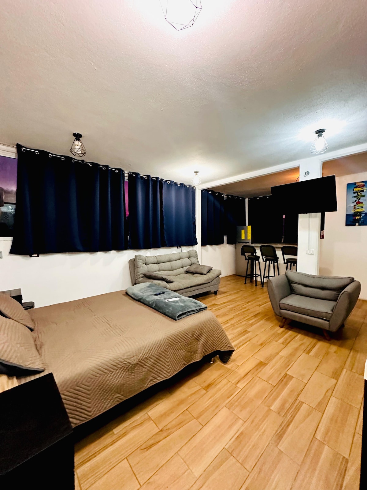 Si buscas un lugar cómodo y único, este miniestudio es para ti. Tiene entrada independiente, baño completo, cama matrimonial y una cocineta con frigobar para que te sientas como en casa. La ubicación es inmejorable: cerca de plazas comerciales, cines, supermercados, museos, parques y de los principales centros de trabajo y negocios. Zona segura y muy bien comunicada, ideal para dos personas. ¡No dejes pasar la oportunidad de vivir en un espacio que combina confort y conveniencia!