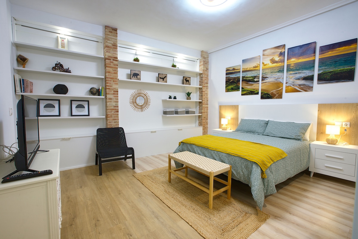 Este apartamento no es un alojamiento estándar: es un espacio cuidado al detalle, con carácter y alma viajera. Cada rincón está pensado para transmitir sensación de hogar, calma y estilo, combinando un diseño moderno con toques industriales, vintage y urbanos. La decoración mezcla materiales naturales como la madera, tonos suaves y una iluminación cálida que invita a relajarse. Encontrarás detalles únicos y elementos decorativos que aportan personalidad sin perder confort.