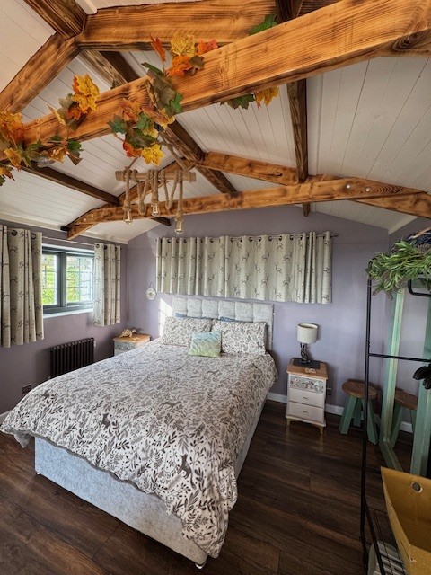Escape to this newly renovated space featuring a unique rustic pallet wood design and modern flair. It consists of adjoining units at the rear of the main property, including a 'small cabin' bedroom with a kitchenette, a Spa Hot Tub room with shower facilities, WC, and a exclusive Sauna. This intimate setting is perfect for couples and honeymooners, equipped with modern comforts like high-speed Wi-Fi, smart TVs, and ambient mood lighting. Kinky decor awaits you—don’t forget your “safe word”!