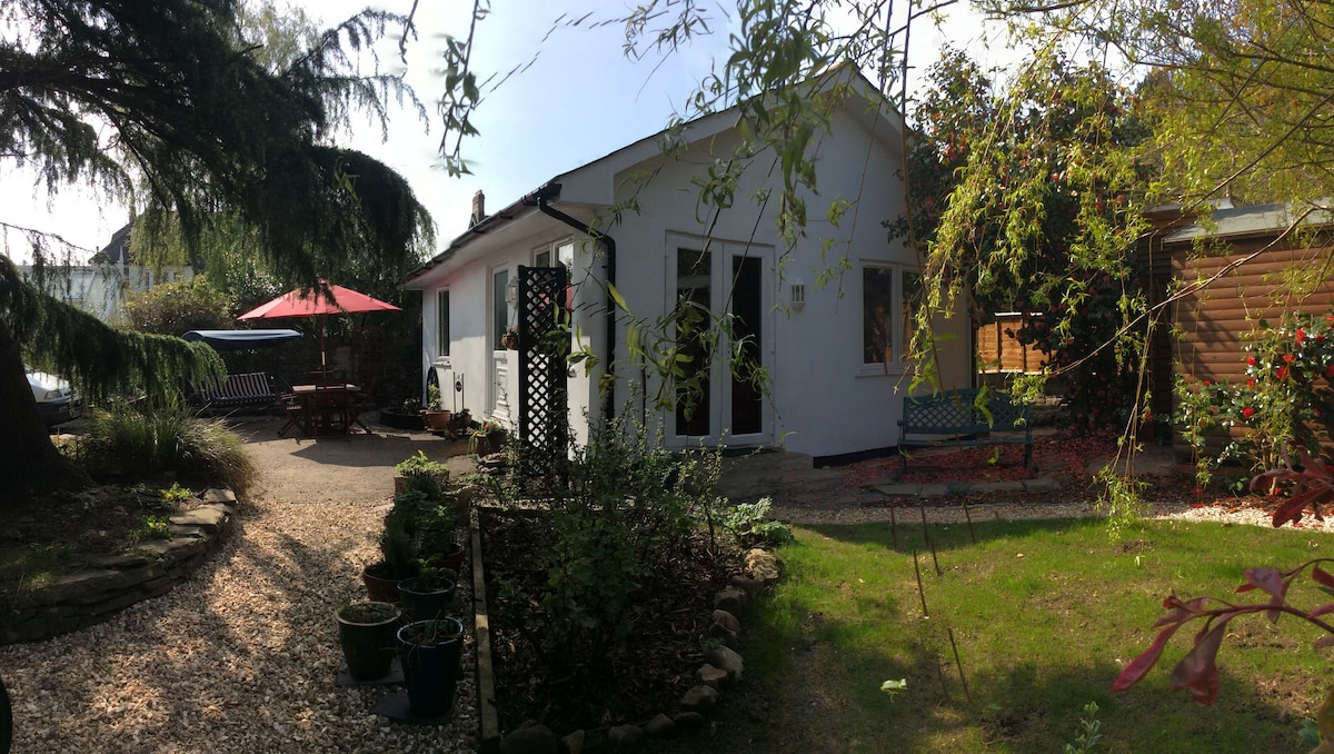 A completely self-contained annex-come-studio in our garden. It has everything you need for a short stay in Cardiff and is very close to lovely parks, cafes, restaurants and shops and is 25 mins walk or ten mins bus ride to town - the bus stop is right behind the annex. It is suitable for a couple, two friends (there's a pull-out single bed in the living area) or a couple with a child. We converted our garage during lockdown and created this unique and cosy space.