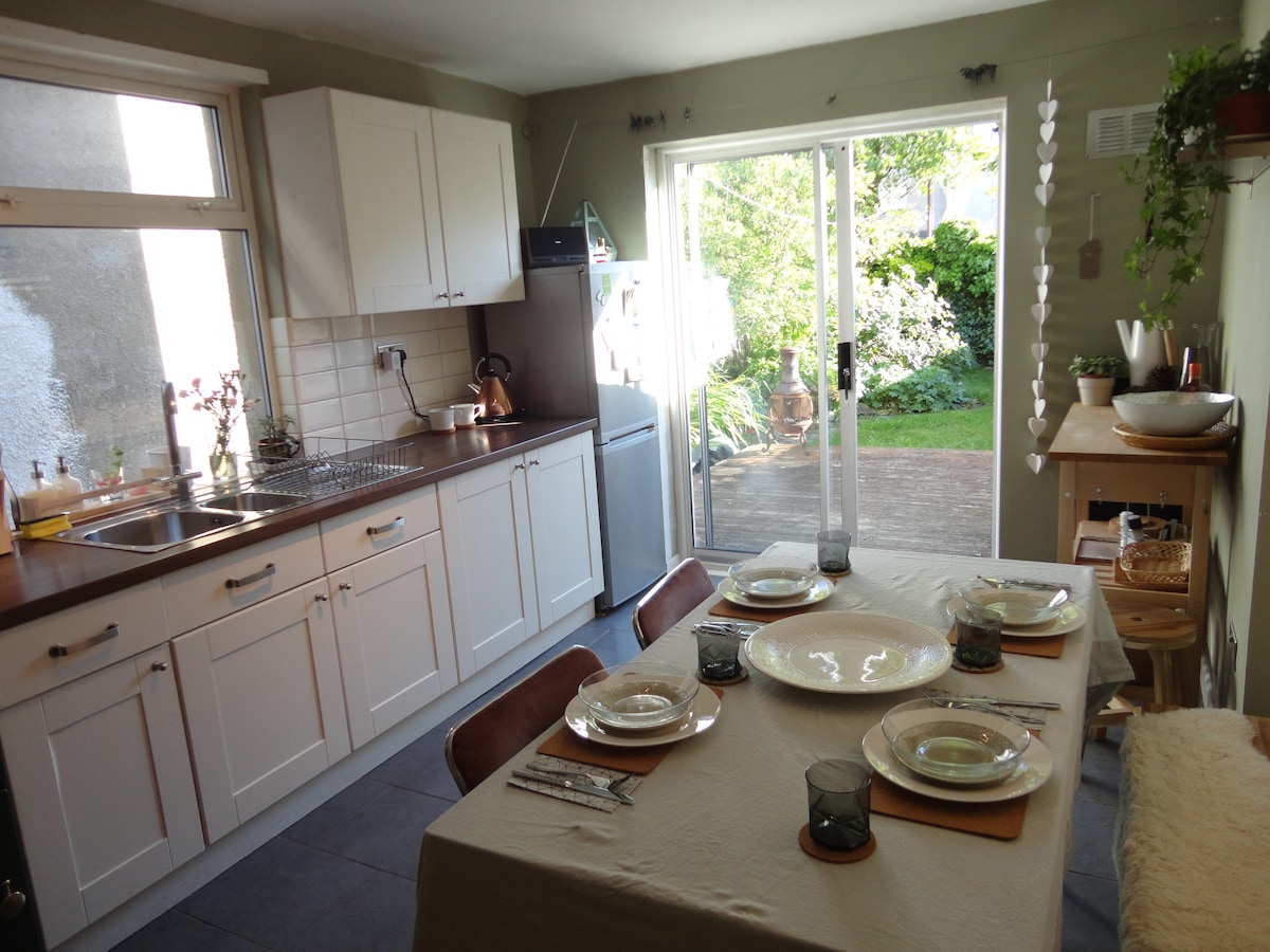 Our outhouse at the back of our garden has been lovingly transformed into a cosy, modern studio apartment. With underfloor heating, large sofa's & kitchen /breakfast area it has everything you want for a short or long stay! Separate entrance also makes it private so you can come and go as you wish. If you do want to go ahead and book, please check out our house rules first.