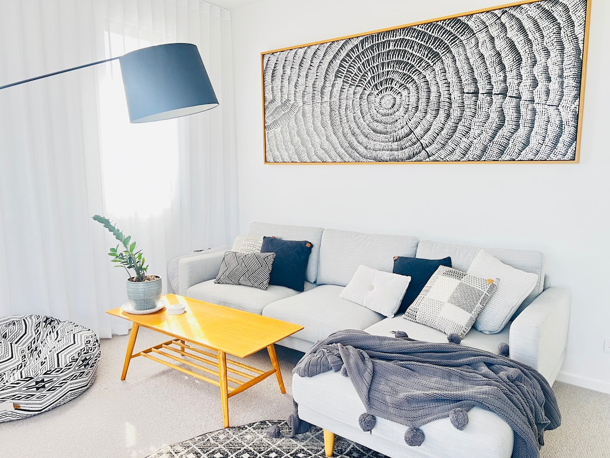 Situated between the beach & the lake at the end of a quiet cul-de-sac with a picturesque lagoon view! And only metres away from access to the famous new Fernleigh Track! This one bedroom fully equipped cozy house is brand new & spotlessly clean! Fully equipped with all linen, towels, soaps, shampoos, toilet paper, Nespresso coffee machine + coffee pods, kettle, instant coffee, tea bags, sugar, toaster, air fryer & all your kitchen essentials.