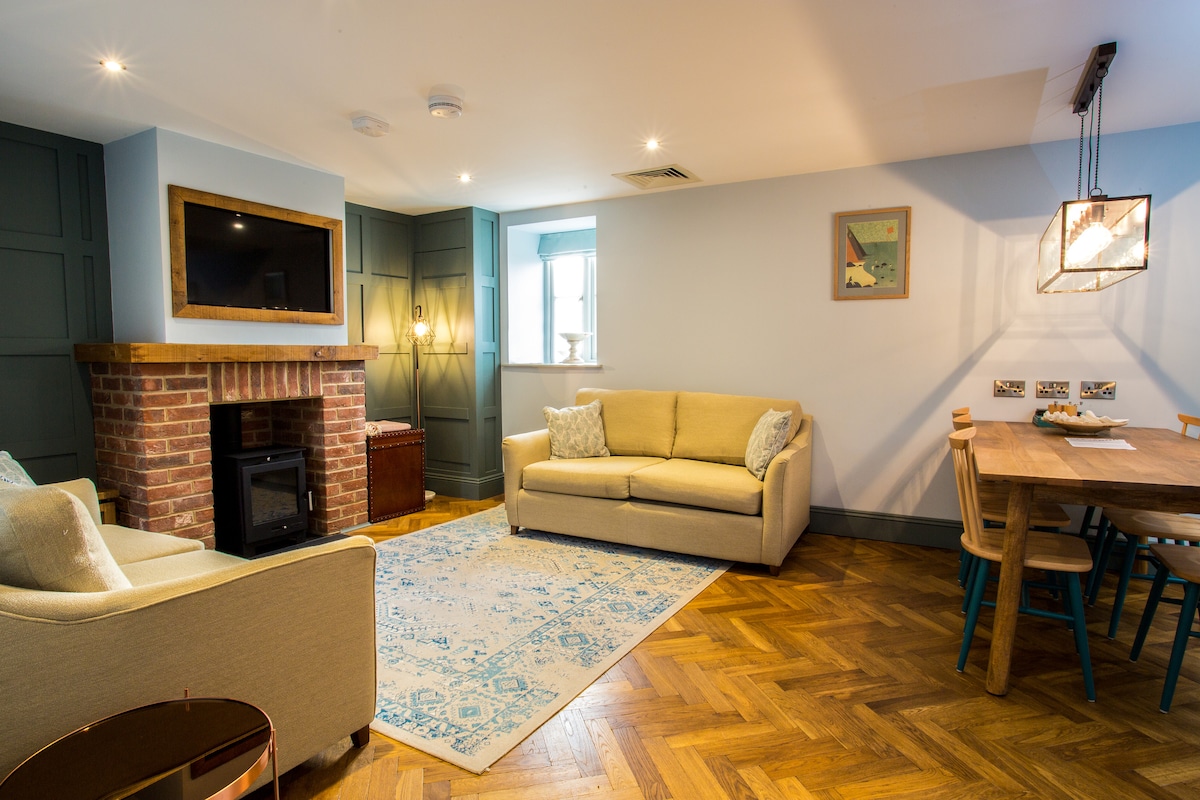 The Old Stables were restored to a very high standard in 2018 and offer very comfortable and spacious accommodation with two bedrooms, both with en-suite shower room. The living space is open plan with a large sitting area, dining and fitted kitchen. There are two sets of bi-fold doors with lovely views across the valley. Under floor heating makes the cottage very warm and cosy. Wifi is connected and there is ample parking.