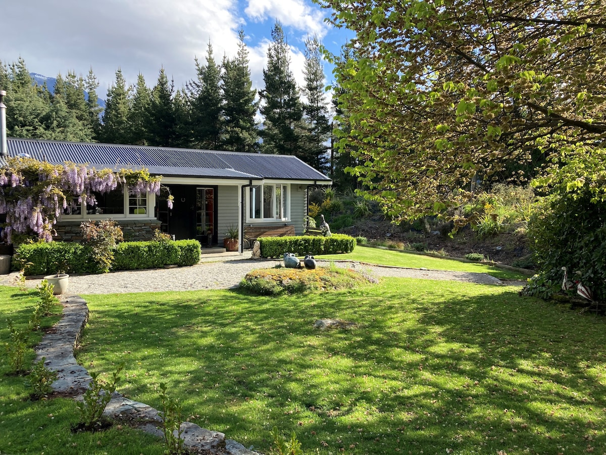 We welcome you to come and stay in a beautiful piece of paradise! Our architecturally designed little home by award winning architect, Anna-Marie Chin is nestled against beautiful exposed schist rock in a stunning landscape. There are 3 acres of land to roam on and the views from the land are stunning! The lounge has north facing high angled windows allowing all day sun and provides stunning views of the hills beyond and the gorgeous Central Otago landscape. From the west sliding doors and the built in window seat you have stunning views of the Remarkables. The Queenstown trail is right outside your door so it is a fabulous location for walking and biking. Come and stay and see for yourself!