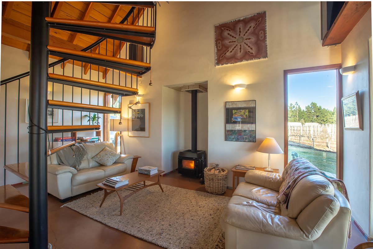 Maori Point cottage is nestled in our vineyard, 30km from Wanaka , with spectacular mountain views and access to the Clutha riverbank for walks or picnics. Warm in winter with underfloor heating and fireplace, the living areas include a full cook's kitchen which opens onto a verandah, lawn & native garden. The large upstairs bedroom has king bed and mountain views, downstairs bedroom has a queen bed with garden outlook. A quiet peaceful environment, and a good base for exploring.