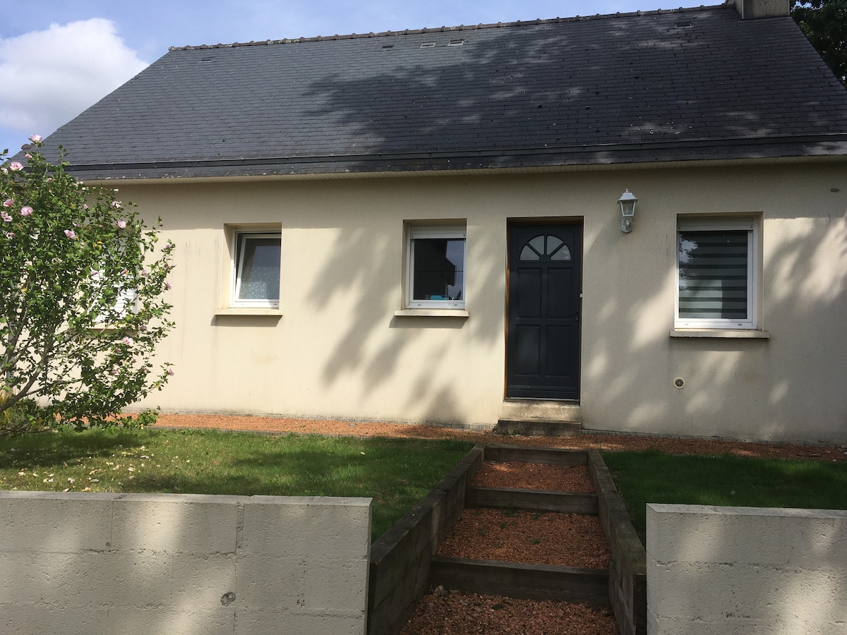 large house with a veranda and a large garden, 4 bedrooms for 8 people. Easy access, private car park. Quiet but not isolated. Carhaix is at 2 min by car. you can find a lots of activities: a swimming pool, cinema, golf, accrobrances, labyrinthe, hiking. In July, the Vieilles Charrues Festival. Beaches at 45 min. Differents places to visit: Vallée des Saints (15 km), Huelgoat (17 Km), Castel of Trevarez (25 km). You can spend good time.