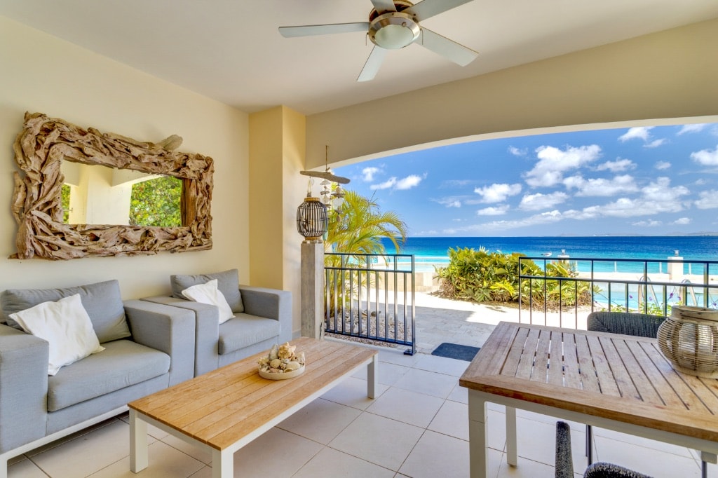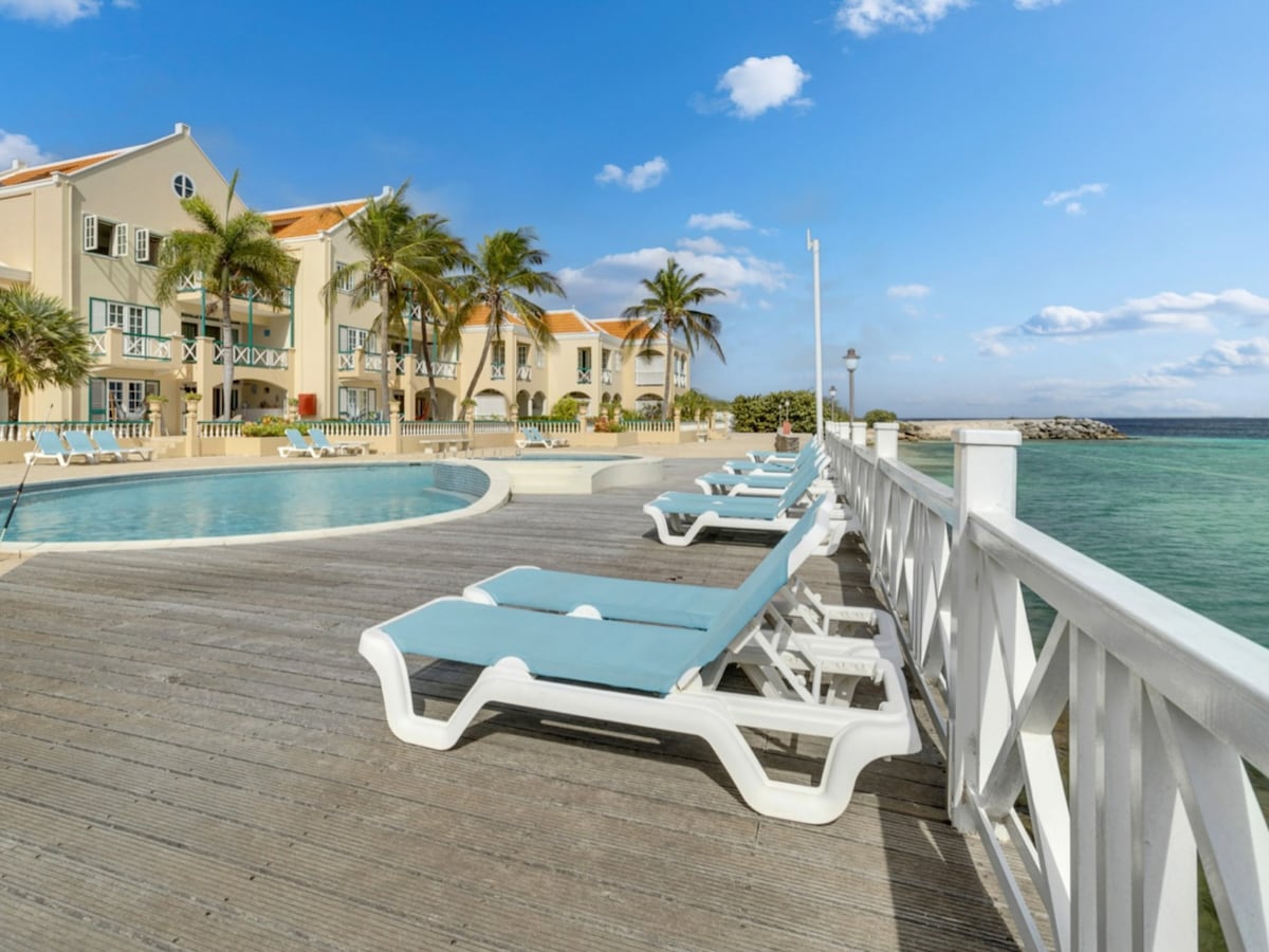 This fabulous luxurious oceanfront vacation rental has all for a perfect vacation !! It’s own sandy beach, a sundeck with sun-loungers to relax and a brand new swimming-pool to cool down on a hot day. Diving and snorkeling just in front of the apartment with easy access to the Caribbean sea. Centrally located for wind- and kite surfers and close to all the famous dive sites in the South. Spectacular sunsets and keep your eye open for Dolphins !!
