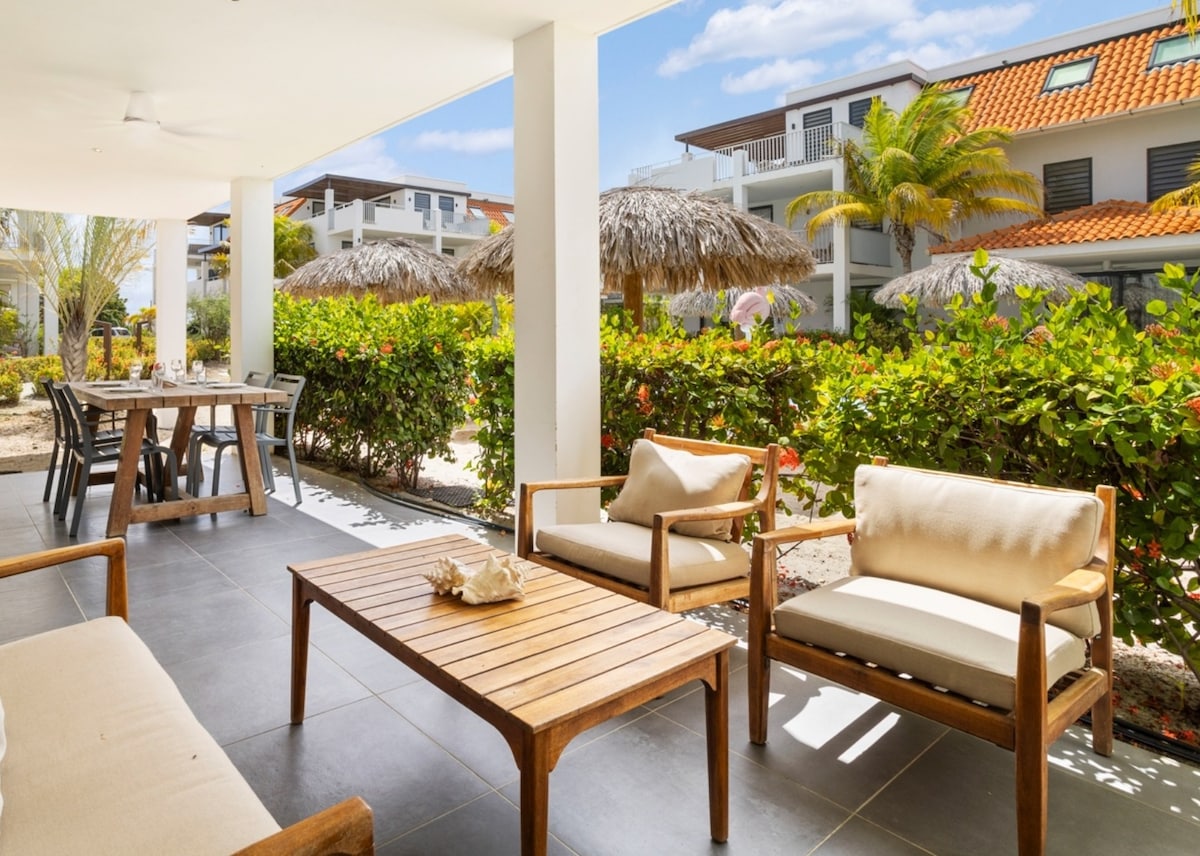 Deze centraal gelegen (op 200 meter afstand van Bachelors Beach) en unieke Garden villa is volledig nieuw gebouwd en stijlvol ingericht. Verhuur start januari 2026. De Garden Villa ligt in de tropische tuin van Puur Bonaire Boetiekhotel naast de appartementen en studio's, direct aan het zwembad. Het ruime dakterras met buitenkeuken en bbq biedt prachtig zeezicht, en beneden is een heerlijk terras. Geschikt voor 2 volwassenen (en eventueel 2 kinderen vanaf 12 jaar).