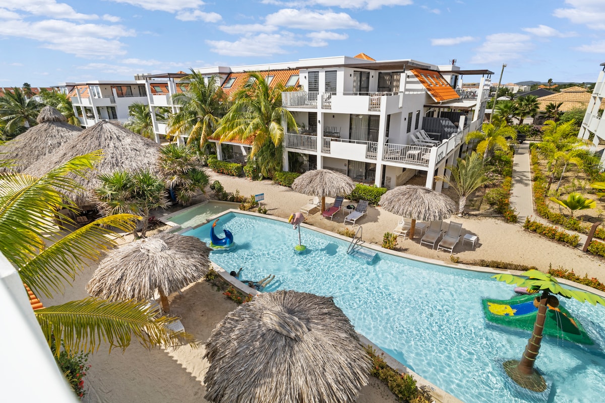 This luxurious oceanfront villa is ideal for divers, surfers and families! Oceanfront (easy access) with beautiful reef in front of the house, great dive shop (courses all ages and levels) next door and short walk to Kralendijk's centre. 3 bedrooms, 3 bathrooms. Large open kitchen area, fully equipped. Air-conditioning in all rooms. Communal pool. Large outside area for lounge and also big wooden table and bbq to enjoy outside dining the Caribbean way!