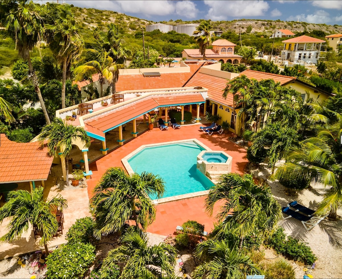 Ontsnap aan de drukte van het alledaags leven en ervaar de pure rust op ons resort. Gelegen op een rustige heuvel neet buiten Kralendijk, biedt dit kleinschalige resort een oase van comfort en privacy. Vanaf hier geniet je van een spectaculair uitzicht over Klein Bonaire en de Caribische Zee evenals de mooie natuur en de lichtjes in de avond van Kralendijk en omgeving. Het resort heeft maar 6 kamers waardoor je overal een gevoel van rust, ruimte en sereniteit ervaart.