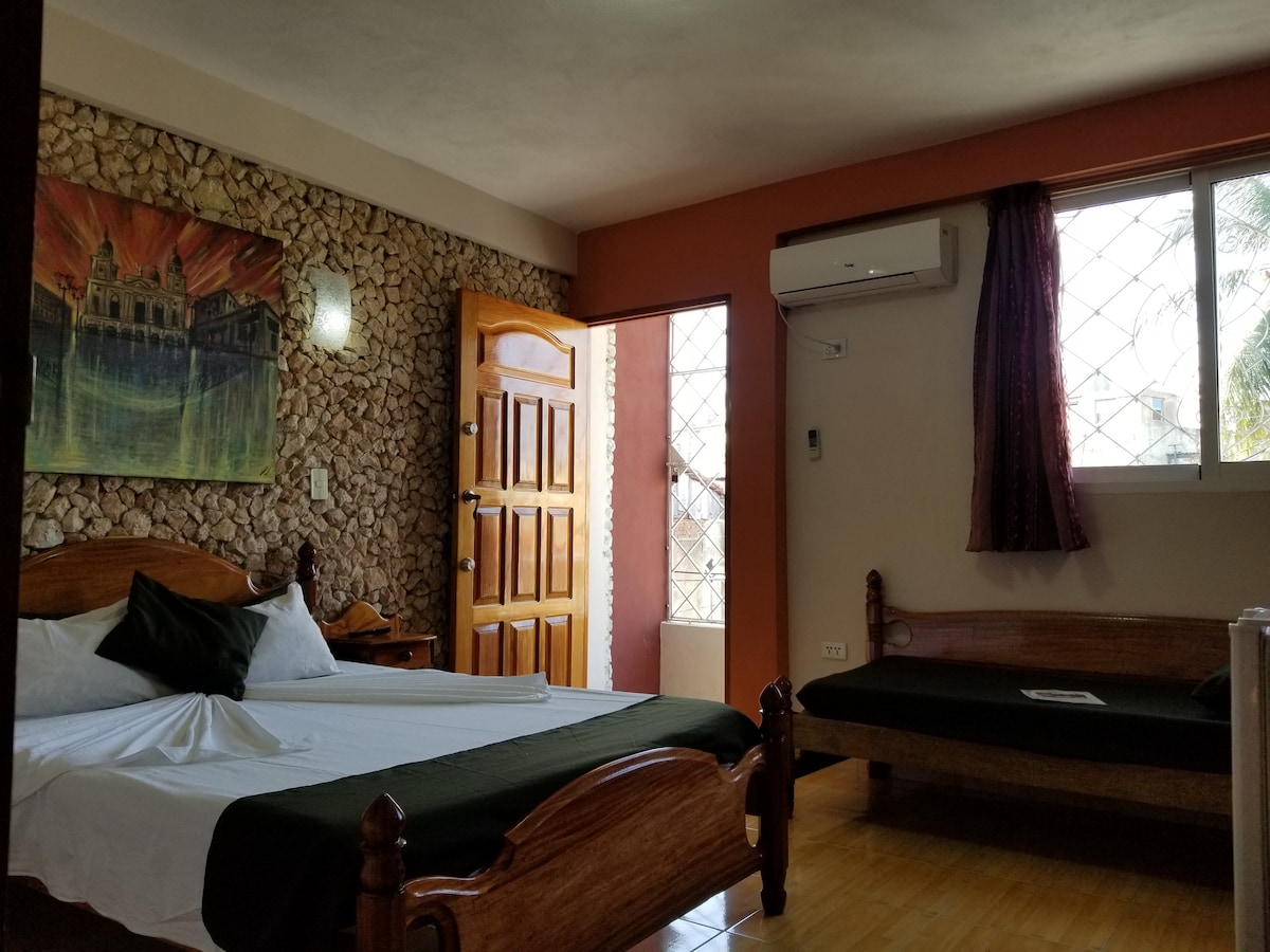 Recently refurbished, Hostal Casablanca is a family house from the 1950’s located in the center of Santa Clara city. It has 3 spacious air-conditioned rooms with bathrooms en-suite. The whole property is very spacious and it has lovely common areas for the comfort of the guests: living room, dining room, terrace and 2 courtyards. The neighborhood is very quiet and it’s only a 5 minutes walk to the Central Park Leoncio Vidal.