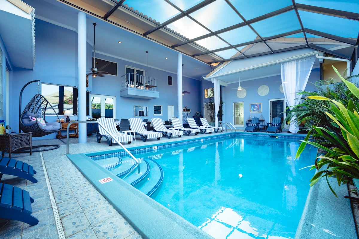 This Guest Suite, on the lower level of our exclusive luxury villa, Casa Encanto, is the perfect tropical getaway. Nestled in the peaceful and lush foothills of the El Yunque Rain Forest, Located in Luquillo with many nearby attractions. You’ll have easy access to downtown Luquillo, El Yunque National Rainforest, Luquillo Beach, Caribali Adventure Park, Las Paylas, charter boat trips, snorkeling, zip lines and much more. The Guest Suite is fully solar with Tesla Batteries and backup water