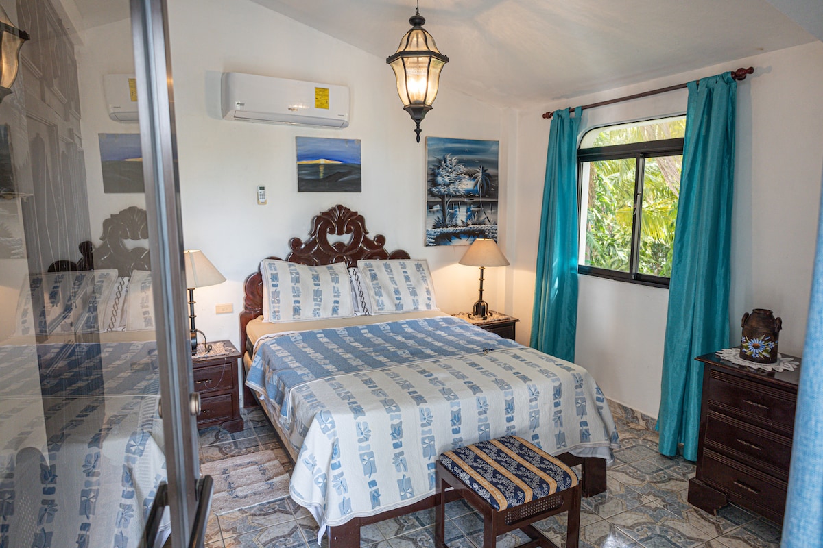 This spectacular family owned OceanView house has 2 bedrooms with A/C and 1 Queen size bed in each room, it has a Queen size sofa bed in the living room with ceiling fans. The Bungalow has vaulted ceilings and an amazing private pool, it is nestled in a peaceful rural neighborhood in Puntas, a World Class Surfing Spot. Located half mile (800m) up the hill from Sandy Beach, It is a single family home.