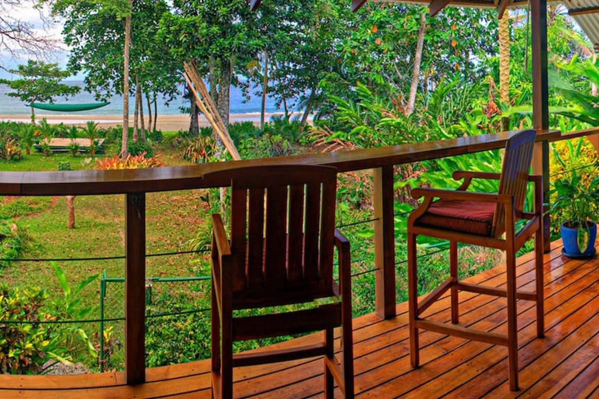 This property is one of the few in Puerto Viejo that's directly on the beach! (No streets to cross...just your own beautiful garden to wander through for direct beach access!). At Villas Serenidad, you'll fall asleep and wake up to sea breezes & sounds; enjoy a practically-private beach; + still be in close proximity to the vibrant and authentic town of Puerto Viejo (we are about a 15-20 minute walk by beach or a 10 minute bike ride). We are committed to making your vacation spectacular!