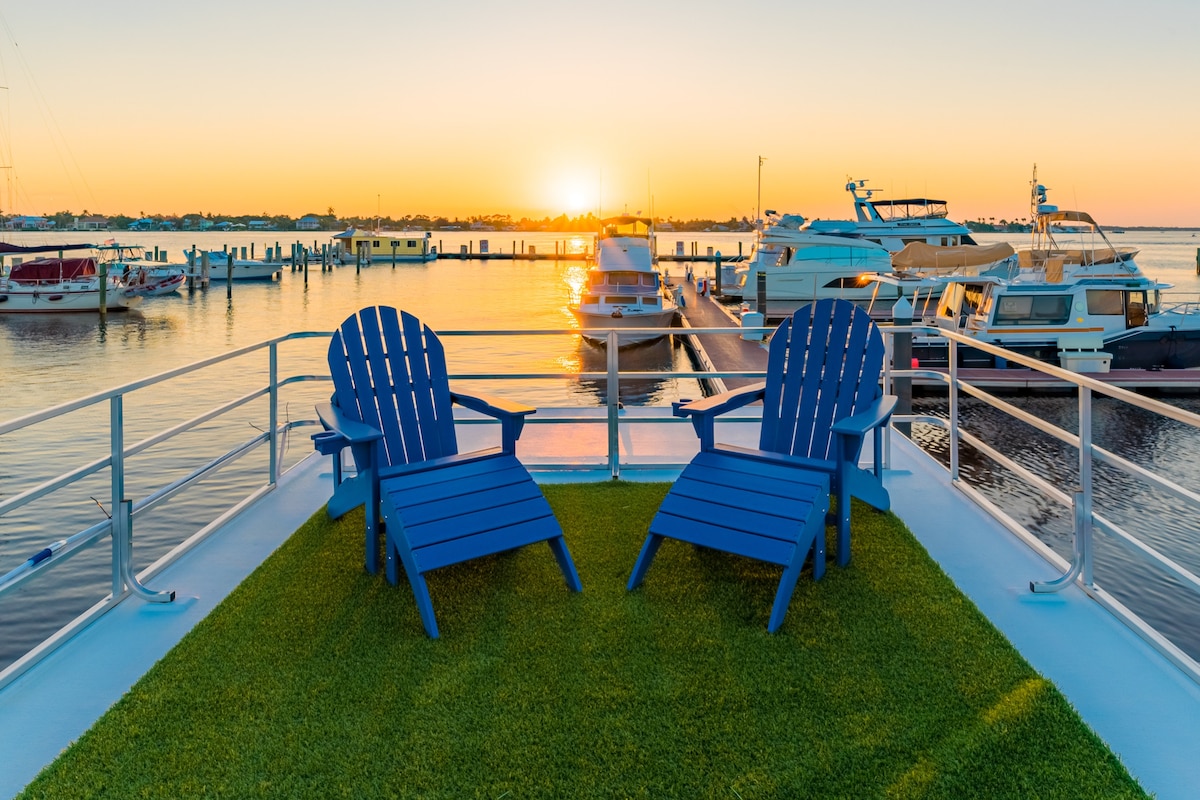 This cozy houseboat is located at Sunset Bay Marina & Anchorage in Stuart, FL. A short 5-minute walk takes you to Historic Down Town Stuart and all of its fabulous shops and restaurants. Here at the marina, we have Sailors Return restaurant and Gilbert's Coffee Bar to satisfy any craving you have. Martin County’s beautiful beaches are just 6 miles away. Two bicycles are at your disposal for enjoyable rides.