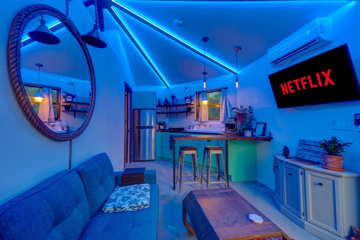 ⭑Octagonal 320ft² tiny home sitting on a private 1.5-acre island!⭑ ✯ Lake access ✯ Walk to dining, nightlife, and shopping ✯ Fully equipped + stocked kitchen ✯ Free bikes + kayaks +beach gear ✯ Backyard fire pit + BBQ ✯ Screened-in outdoor lounge w/ hammocks ✯ Smart TV w/ Netflix ✯ Memory foam bed ✯ 426Mbps wifi Ask which fruit trees are in season for a homegrown treat! 3 min → Siesta Key Beach 7 min → Downtown SRQ 12 min → Myakka River State Park (river kayaking + wildlife viewing)
