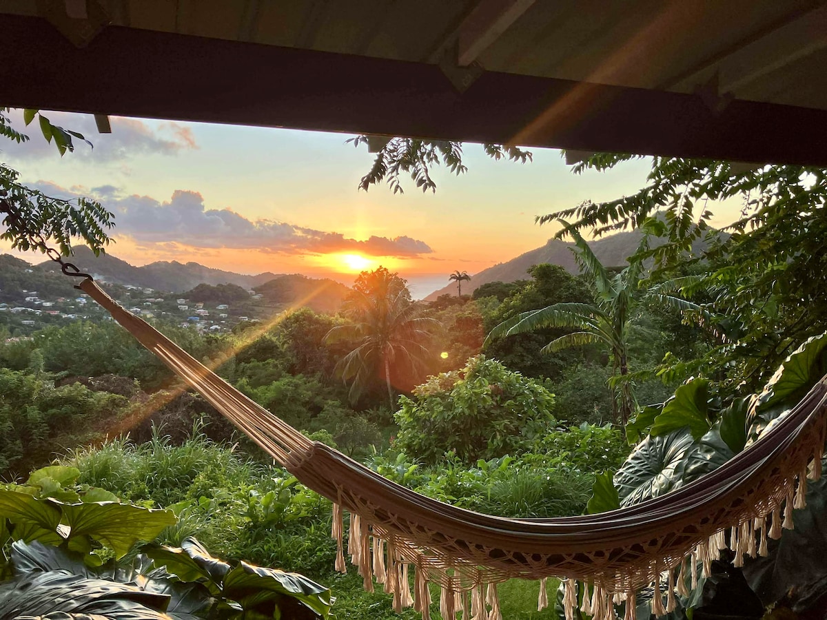 "FouFou Cottage" Seen as "10 Most Affordable Caribbean Destinations" & Safe in Nature CERTIFIED. Sustainably handcrafted, private, self-contained treehouse-style cottage with spacious verandah perfect for birdwatching & relaxing. A natural sanctuary with breathtaking seaviews & cool mountain breezes. A unique, 2 level Open Air, Eco-cottage with Modern Ensuite Bath & Kitchenette. Quiet & Conveniently located less than a mile to sites, restaurants, shops & beaches of Portsmouth.