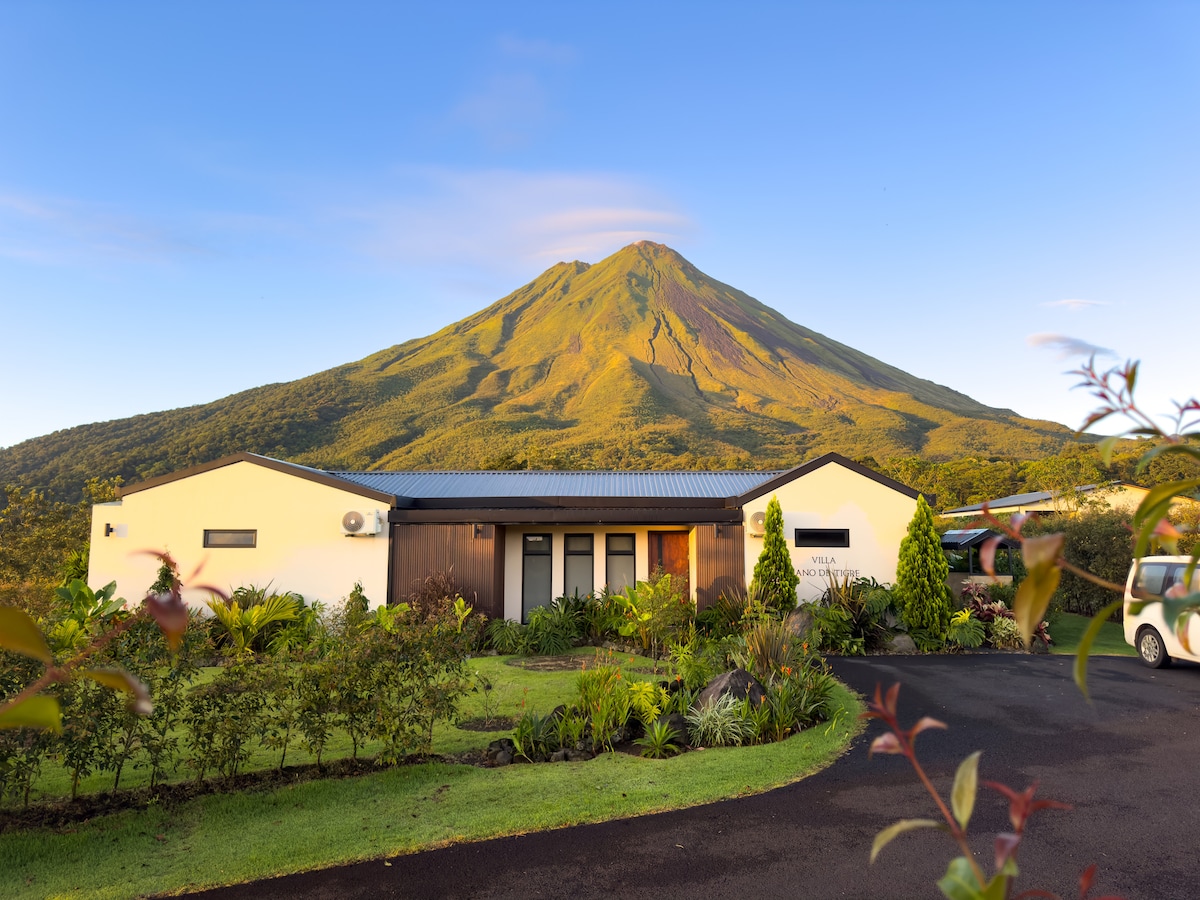 La Villa vacacional con la más cercana y ESPECTACULAR vista al Volcán Arenal A 10 minutos del centro de La Fortuna Totalmente equipada Jacuzzi privado Parrilla y zona de fogata wi-fi de fibra óptica de alta velocidad Ubicado a 1.5 kilómetros de la carretera principal en lo alto de una colina privada en la que estarás rodeado de flora y fauna. Todos los huespedes podran disfrutar del pase de 1 día en las aguas termales del resort cercano Tarifa base para 2 personas. Se recomienda vehículo