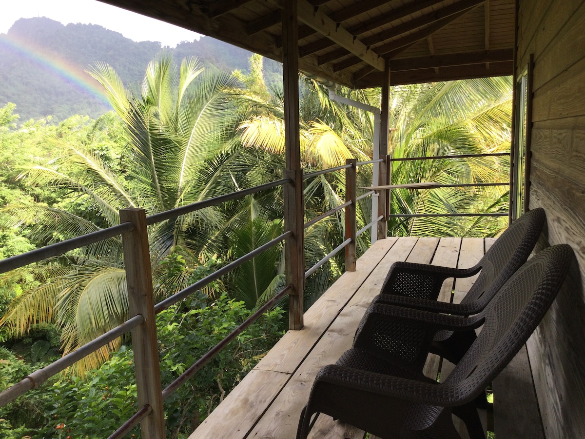 Pine house on rainforest edge Queen Bed Superior mattress Mosquito net Outstanding views valley/sea/gardens WIFI Comfortable, rustic, clean Tranquil setting Can be very windy Good for hikers, birders, yogis Daybed Hike: can hear parrots from cottage Vermont Trail Hills above Bush Bar 10mins-1hr Table Rock, Moonmarket 1 hr 3️⃣ Ponds Waterfalls 2hrs Drive: Superb snorkelling site 45 mins. Provided: Soap, handmade with coconut oil and no fragrance Salt, pepper Coffee 1 towel each Cafetiere