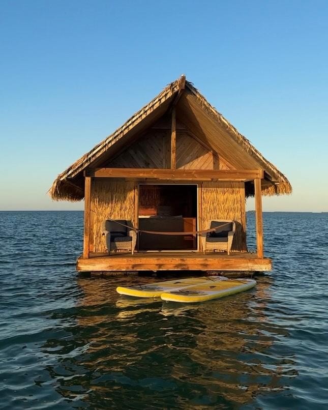 Stay on the water in this one-of-a-kind Tiki Suite in Key West. This private floating bungalow blends boat life with comfort, featuring a custom bed, panoramic views, and direct access to the ocean. Swim, paddle, or relax in a hammock surrounded by nature. A peaceful, off-grid glamping experience you won’t find anywhere else. Accessible by boat only.