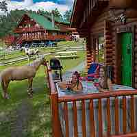 Our place is a perfect retreat for someone wanting to enjoy nature without missing out on the luxury's we all enjoy. Each cabin has its own private hot tub, barbeque, kitchette. Sleeps up to 4 2 children and 2 adults. Not suitable for 4 adults. We provide coffee. We offer Horse back riding. snowmobile rentals available. You also have high speed internet. We offer meals. Please note we are no longer pet friendly
