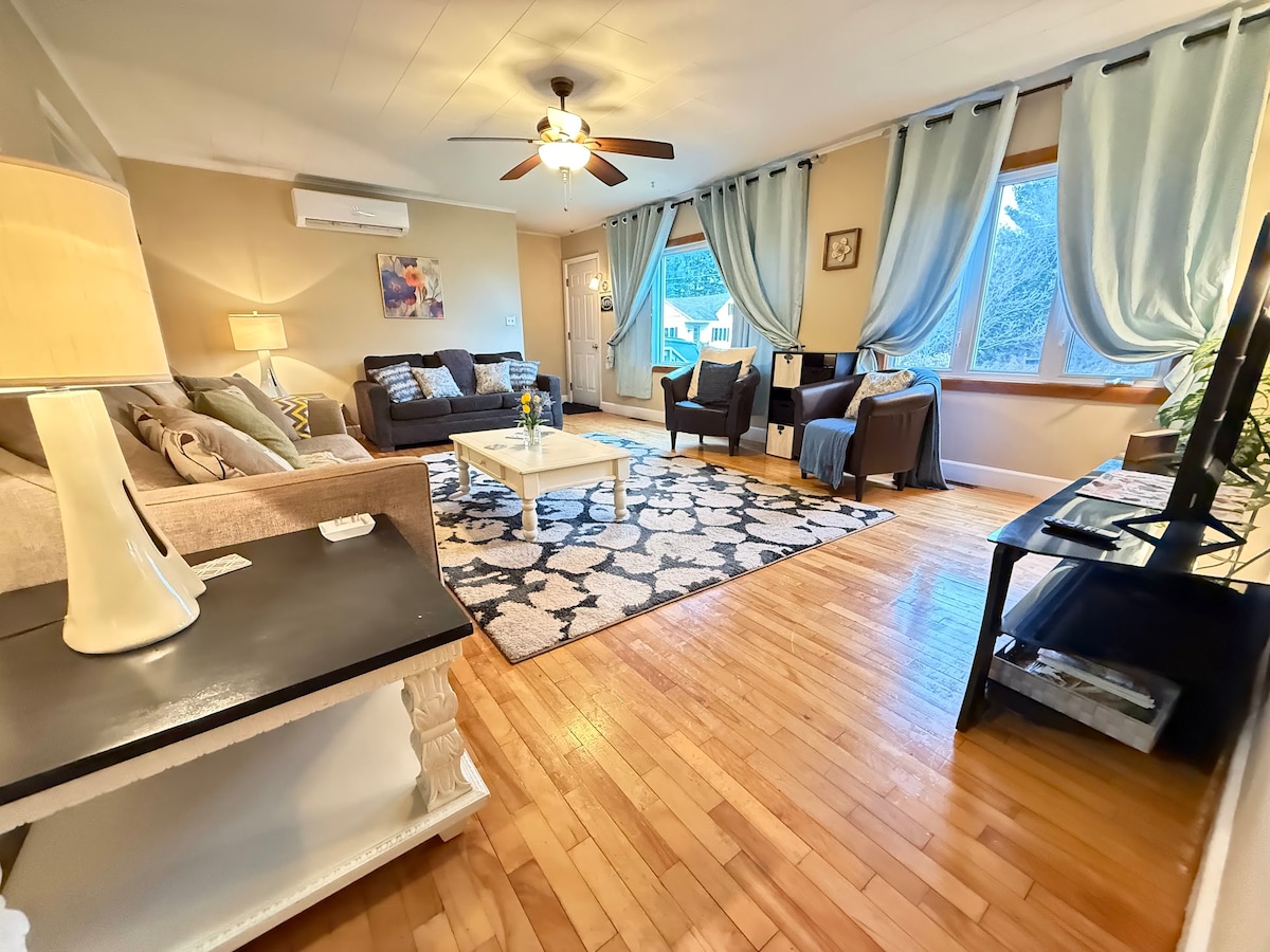Whether visiting for business, pleasure, or medical/family reasons, this bright airy space is designed to make winter travel easier. Spacious garage, plowed and shoveled drives, ramp & walkways. Large entry room for all your winter gear. New bathroom, walk-in shower, breakfast counter with USB plugins, hardwired smoke and carbon monoxide monitors. Welcoming for guests with disabilities. WiFi, cable tv. Daybed for 4th guest. Cancel your booking without charge up to 24 hours before check-in.