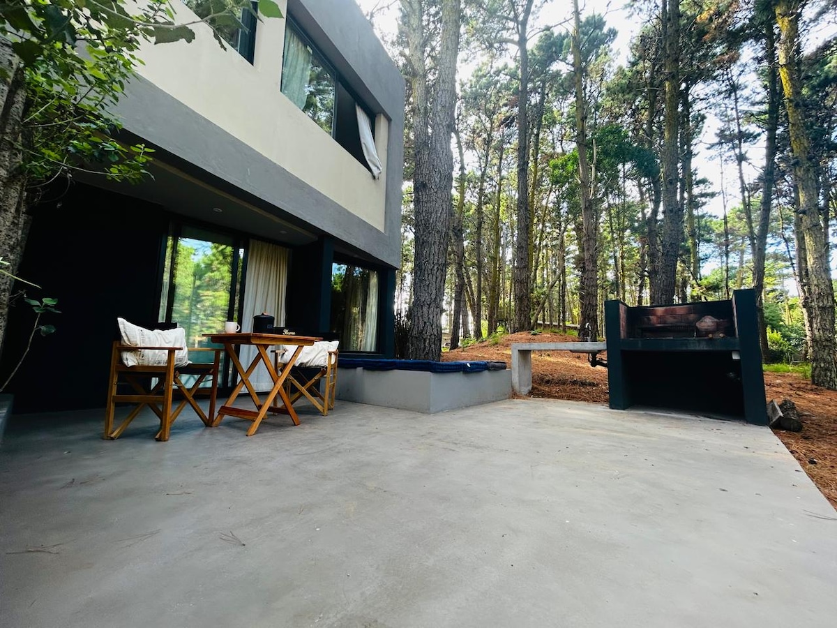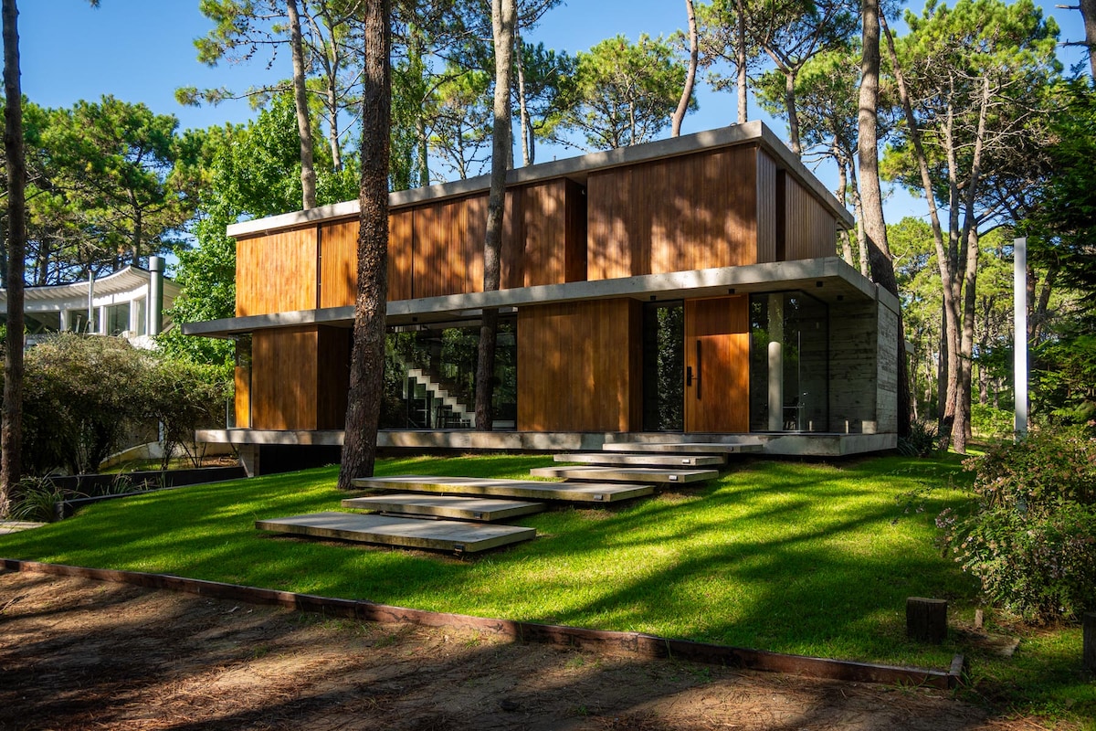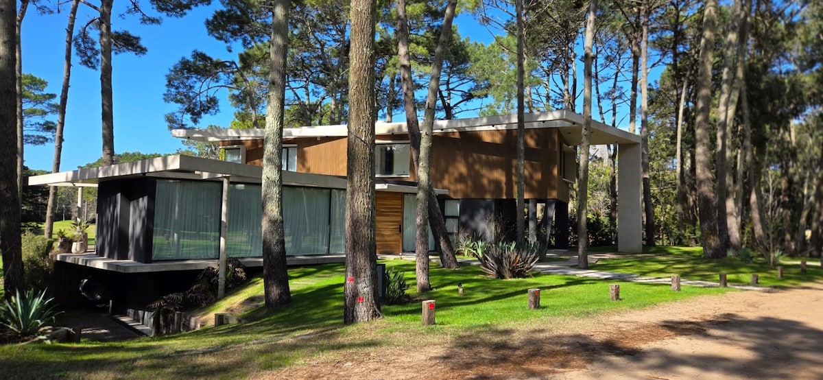 Ubicada en el corazón del bosque, esta moderna y elegante casa de una planta ofrece un refugio único, rodeado de árboles y la tranquilidad de la naturaleza. Con amplios espacios diseñados para disfrutar del entorno, podrás relajarte mientras contemplas increíbles atardeceres y escuchas el sonido de la fauna local. Pensada para disfrutar al máximo del aire libre, con una extensa galería semicubierta, piscina, parrilla y fogonero, donde podrás compartir momentos inolvidables con familia o amigos.