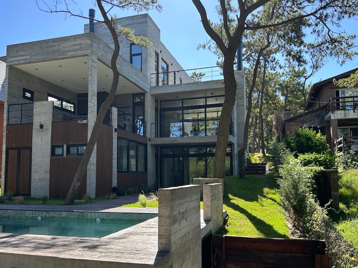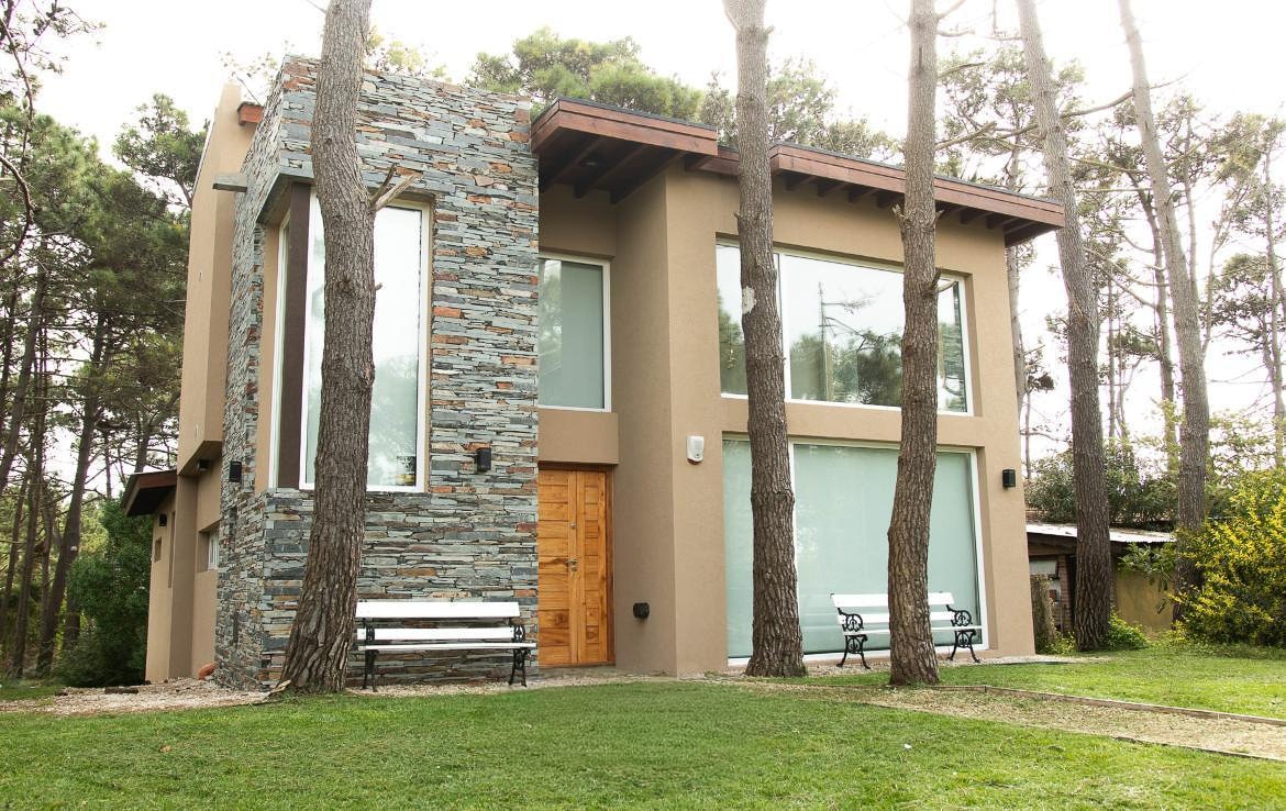Ubicada en el corazón del bosque, esta moderna y elegante casa de una planta ofrece un refugio único, rodeado de árboles y la tranquilidad de la naturaleza. Con amplios espacios diseñados para disfrutar del entorno, podrás relajarte mientras contemplas increíbles atardeceres y escuchas el sonido de la fauna local. Pensada para disfrutar al máximo del aire libre, con una extensa galería semicubierta, piscina, parrilla y fogonero, donde podrás compartir momentos inolvidables con familia o amigos.