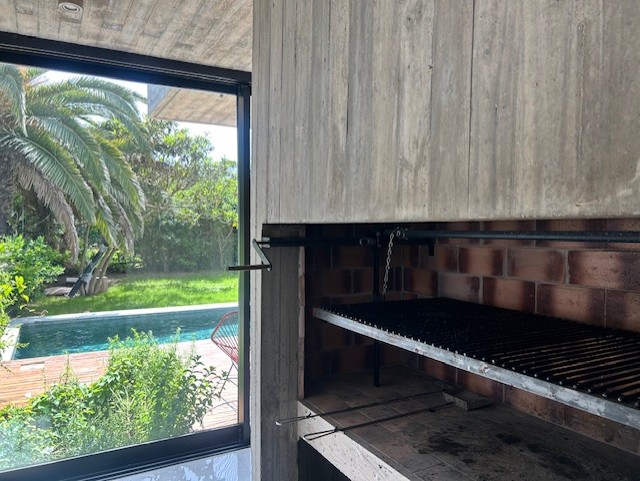 Beach & woods combo in Cariló! Modern 10-person home in Constancia: 2 suites, 3rd bedroom (2 singles or double), 4-person playroom, 32" smart TVs, full kitchen, 3 extra baths. Pool heated (Dec-Jan-Feb), laundry with washer & dryer. Rent sheets/towels. Coastal woods getaway! Book now!. Sheets & towels for rent.