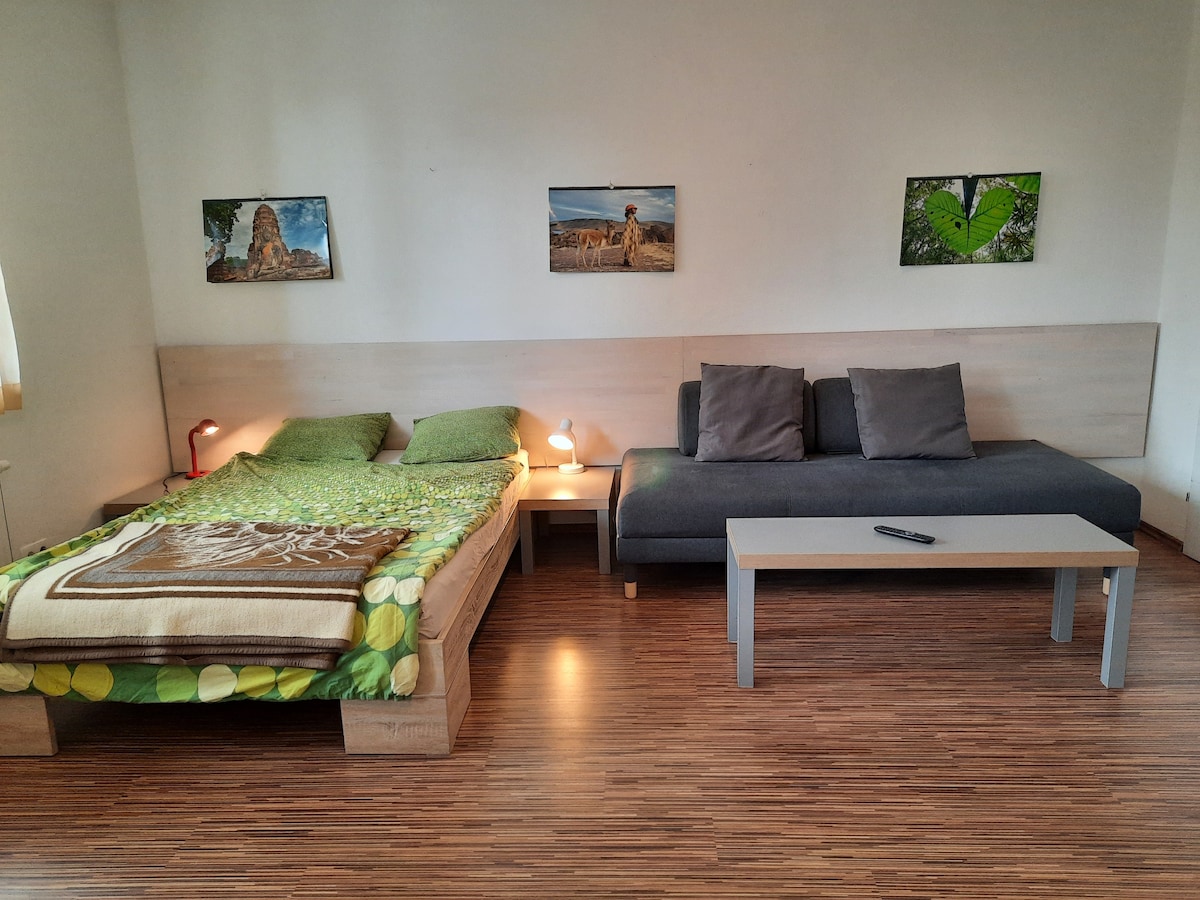 Simple but sunny and quiet studio (1 room appartment), approx. 35 m2, south-facing, well-located between city center and lake, free parking in 30 m distance (public street), bike rental Nextbike nearby, Wörthersee Pluscard upon request. Convenient for 2 people, 2 additional couch beds possible (4 people max.). Double bed will be prepared by default. If you wish for separate beds, please let us know.