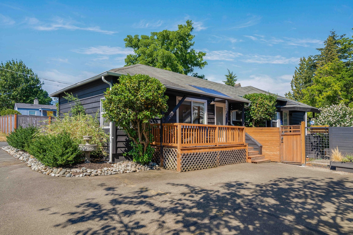 Explore our chic, contemporary guesthouse located on a peaceful, tree-lined street close to the heart of Seattle! This distinctive property boasts AC, a rare find in Seattle homes, and is equipped with a premium workstation ideal for remote work and a convenient L2 EV charger. Our guesthouse also offers easy access to public transportation and is just a quick stroll from Green Lake's dining, entertainment, and nightlife. We celebrate diversity and welcome guests from all backgrounds.