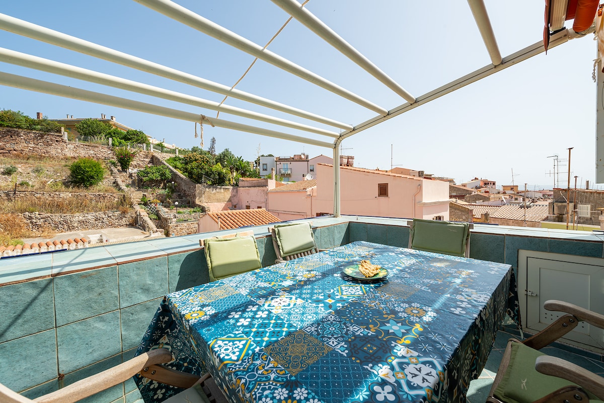 Situata nel centro di Carloforte, è composta da: Piano terra con camera matrimoniale + letto a castello (4 posti letto totali) e bagno con doccia. Primo piano: soggiorno con cucina con forno, frigo, lavatrice, microonde. Mini-ufficio.. Secondo piano: camera matrimoniale con due posti letto. Terzo piano, raggiungibile con scala a chiocciola composto da Bagno con doccia, Mini-cucina completa con terrazza con vista citta e porto. TV Satellitare (anche tedesca) 25€/notte per ospite dopo i 4.