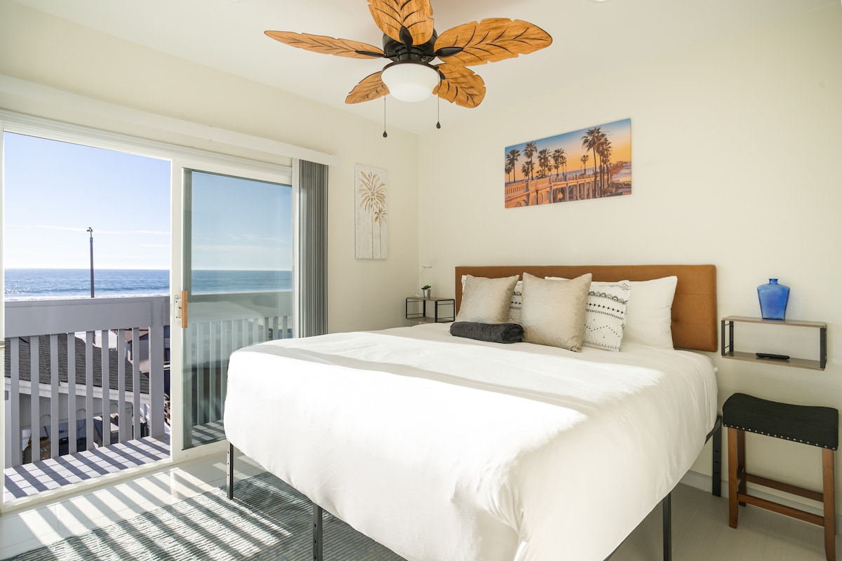 Look no further for the ultimate beach getaway. This newly remodeled second level unit (WITH PARKING) is the perfect location for beach travelers to experience classic Southern California! Located across the street from the beach, you are steps away from the sand, waves, pier, shopping, and restaurants. After a day of enjoying the beach life, relax on the front patio, have a glass of wine or a local brew, and enjoy the sunset from the privacy of your beachfront patio with panoramic ocean views.