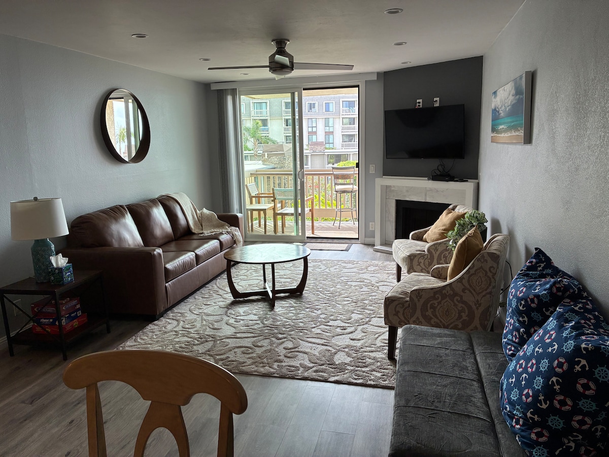 Clean modern Space with a panoramic view of the harbor and beach! NORTH COAST VILLAGE, located in Oceanside, California, this recently fully remodeled beach dream has 1 Bedroom, 1 bath, sleeps 4, full kitchen, gas fireplace and ocean view balcony G unit offers you a beach resort lifestyle. Amenities at North Coast Village include patios and balconies overlooking the ocean, direct beach access, 24-hour security, a heated pool and jacuzzi, exercise gym room, recreation game rooms, putting greens, fitness center, and an outdoor BBQ grill area supplied with beach toys, beach chairs, beach umbrella, boggie boards, etc. The lush tropical grounds with its waterfalls and soothing koi ponds, make this community a serene place to vacation. Only 45 minutes to Disneyland, 30 minutes to Seaworld, and Legoland is only 10 minutes away, no pets & no smoking. Rental terms: 3 night minimum June thru August $200 Monday-Thursday and $220 Friday-Sunday Holidays and special events $200 to $220 Offer weekly and monthly discounts cleaning fee $150 fully refundable security deposit $300 no pets allowed (URL HIDDEN) You have access to all amenities, pools, barbecues, fitness center and sauna. There is also an event space that can be booked separately. Let us know if you wish to hold an event and we can put you in touch with the management. Please do not hesitate to reach out for any needs, questions, tips while in town. The apartment is in a great complex with a relaxed beach resort vibe. The property is located right by the water. There is a community amphitheater nearby that holds summer outdoor movies and concerts. There are many great restaurants and shops in walking distance. You are close to the train station and bus station. You are close to everything so feel free to travel light. Fast Wifi Cable for Sports and Movies Apple TV for movies, games and music for when you just want to stay in.