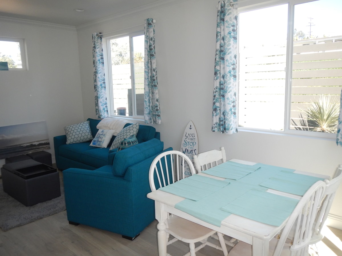 Brand New one bedroom guesthouse with private entrance and private patio. Modern design, fully furnished, and fully equipped kitchen. One bedroom with a queen bed and in the living room a pull out sofa bed. Street parking in front of the property. Points of interest: -Downtown Vista (5 minutes away) with restaurants, shops, movie theater, and breweries. -Beaches (10-15 minutes away) -Legoland (20 minutes) -Safari Park (45 minutes) -Camp Pendleton (15 minutes) -San Diego (40 minutes)
