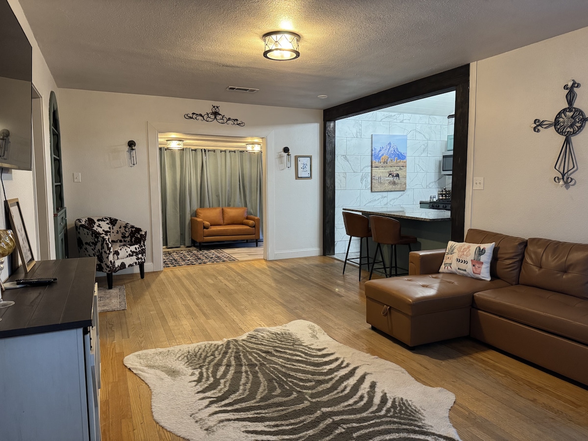 Stay in comfort and style just 50 minutes from Carlsbad Caverns. Our well-appointed single-story 3-bedroom, 2-bath home (1 king and 2 queens) offers all the comforts of home with tasteful décor, modern furnishings, and plenty of natural light. Located in a quiet, nice neighborhood within walking distance of the Pecos River and the historic Pecos River Flume, the house provides easy access to both outdoor activities and local attractions.