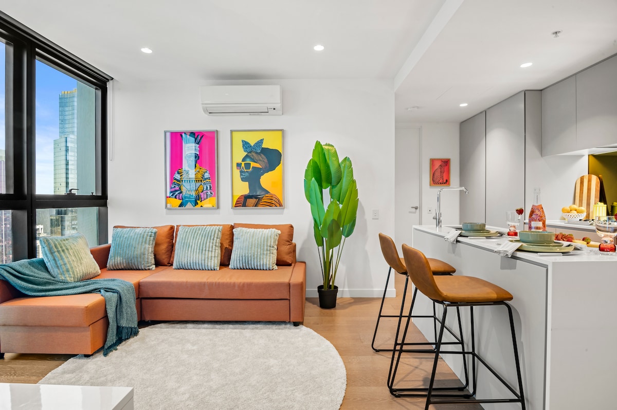Stylish large one-bedroom apartment at 16F located in the heart of CBD, warmly decorated and tidy environment, nice and cozy place to stay, very close to Melbourne Central Station, Victoria Market, supermarket, trams, restaurants, coffee shops, etc. here is a wide range of high class restaurants and hotels. Shopping brunch and entertainment are all catered for. Free high speed Wi-Fi. Netflix TV. Make full use of luxury amenities such as the pools. Excellent service feel like home.