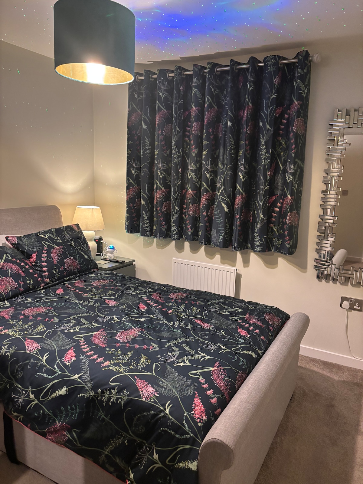Welcome to my delightful guest house in the grounds of my home. Benefitting from its own private access, the living space is modern and open plan. There’s the convenience of a separate utility room including a washing machine. The master is a double, the second bedroom has bunk beds. There’s a powerful shower in the bathroom. Parking on the large driveway, and access to a patio space just outside of the living/dining area. as well as a pod point for electric vehicles, for an additional fee.