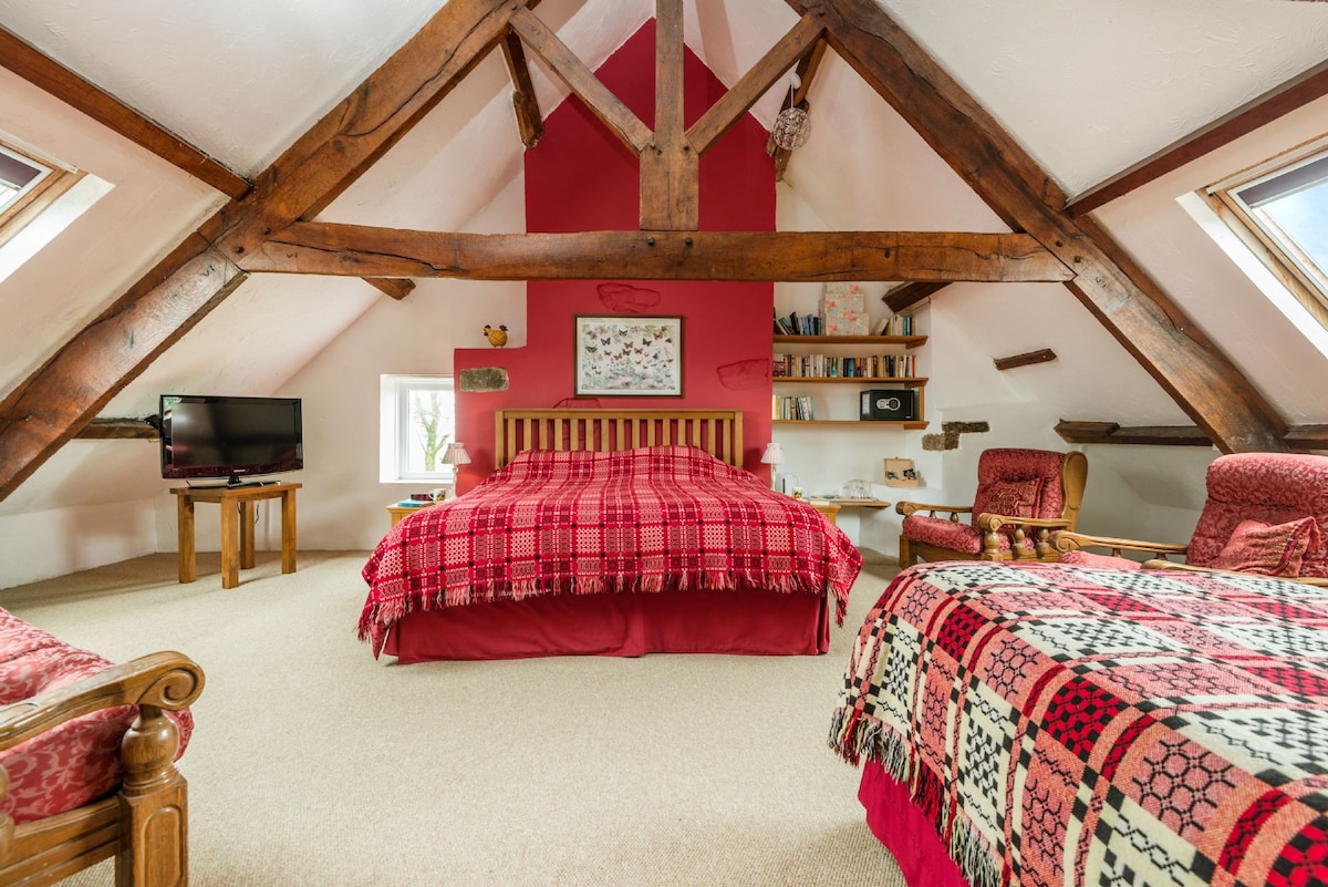 Suitable for 2 adults or a family with 2 children. This is a comfortable large room with a continental style breakfast. Use of the decked area and seating. Beautiful, quiet village location. Surrounded by woodlands, riverside walks and waterfalls, this is a peaceful small village setting. Pub within walking distance (½ mile) and others in both the nearby towns.. Within short driving distance to beautiful beaches. Towels and bed linen provided. There is no lift, only stairs to access the room.