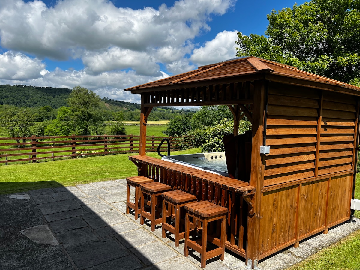 All the comfort and convenience of a brand new static caravan in the peace and tranquility of the countryside - no other caravans in sight! Enjoying it's own private garden, with decking and a private hot tub, our static caravan offers a supremely comfortable master bedroom with an ensuite loo, a twin bedroom, family shower room, fully equipped and spacious kitchen and a light and airy living room. Dine outside enjoying beautiful views of our land and the valley. On site bar open to guests.
