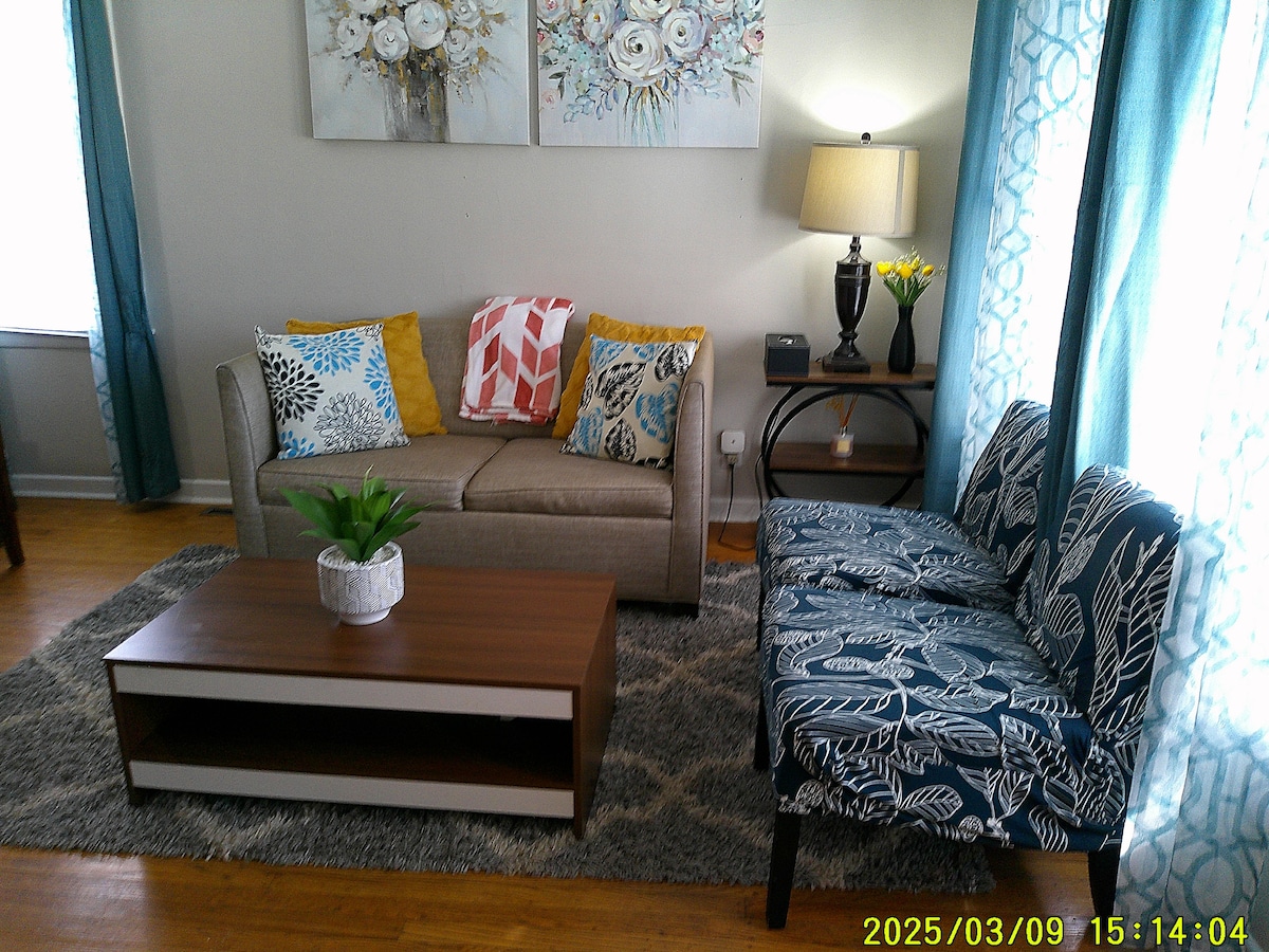 Feel at home in this charming 2 bed/1 bath bungalow in a quiet, historic neighborhood! The property features refinished hardwood floors, comfortable furnishings, thoughtful decor and updated fixtures in the bathroom. A modern kitchen offers new appliances, the essentials for cooking, a charging station, and a coffee bar with snacks. Retreat to the spacious fenced in yard and lounge on the patio. History is important to us so we updated the space while staying true the original character & feel.