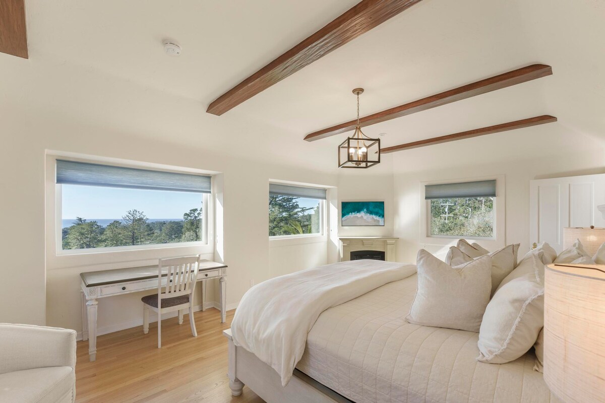 Welcome to your Carmel by the Sea dream getaway. This home was completely remodeled in 2018 by renowned architect Erik Dyar around the original Carmel stone fireplace. Enjoy the fresh, clean and open space of a modern home which is rare in Carmel by the Sea. Soaring ceilings, masterful design elements and furnished with comfort in mind. Lots of space in the back yard of this home (9600 square foot lot) for kids to roam, or your eyes to rest on the gorgeous Eucalyptus and Cypress trees.
