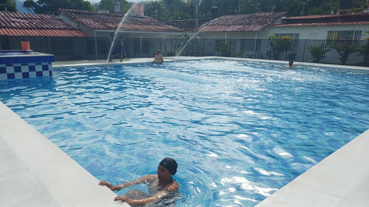 The Villa located 10 blocks from the main church of Melgar on a paved road, has capacity for 25 guests, in 7 rooms with private bathroom, cable TV and fan (1 with air conditioning). It has a private pool, living room, equipped kitchen, natural gas, refrigerator, BBQ, Wifi, board games, bolirana, ping pong, basketball, tennis wall and parking for 5 cars. The entire house is rented to a single group to provide privacy. The value is per night per person