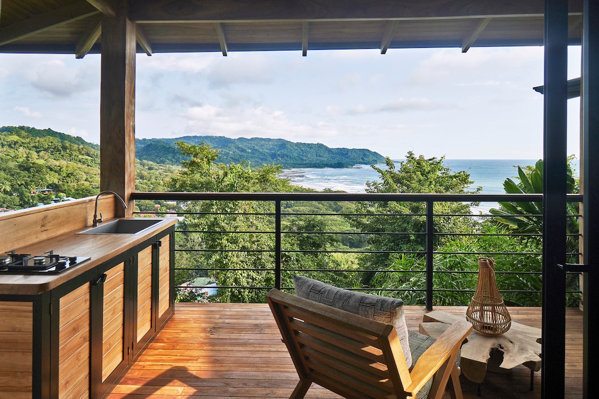 A TRUE STUNNER! This boutique villa is nestled in the lush Costa Rican jungle and offers breathtaking views of the Nicoya Gulf and the Pacific Ocean. Surrounded by exotic wildlife, including monkeys, birds, and iguanas, it provides a front-row seat to Costa Rica’s epic wilderness. If you're seeking a jaw-dropping panoramic view and unmatched privacy, Villa Ebony won't disappoint. Located right in the heart of Santa Teresa, it’s just 150 meters from the beach, grocery stores, and restaurants.